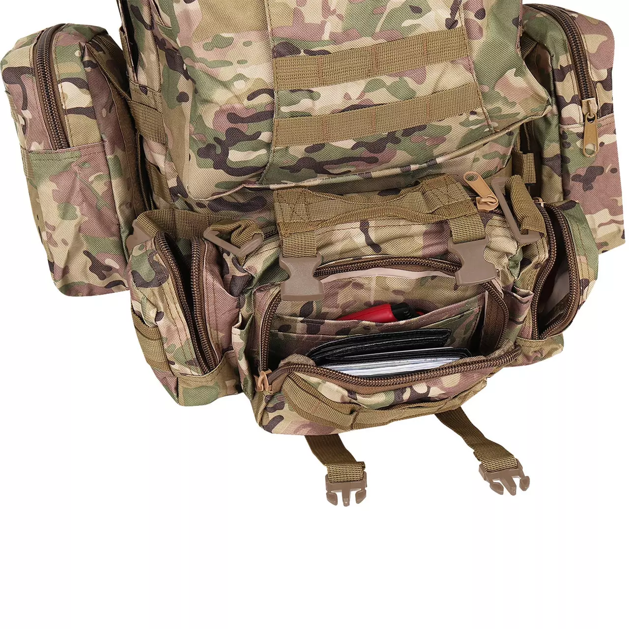 DETACHABLE BALL BALL - рюкзак також має знімну сумку, яка монтується в систему MOLLE. Це дозволяє закріпити його на брючному поясі. У комплект також входить ремінь, який дозволяє надягати і носити як звичайну поясну сумку. Він має ручку у верхній частині, яка також дозволяє носити його як сумку. Нирка має сітчасту перегородку в основній камері. Також спереду є відділення з 3 кишенями і 2 бічними кишенями на блискавці. Його також можна використовувати як туалетну сумку під час кемпінгу.