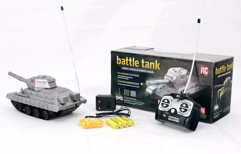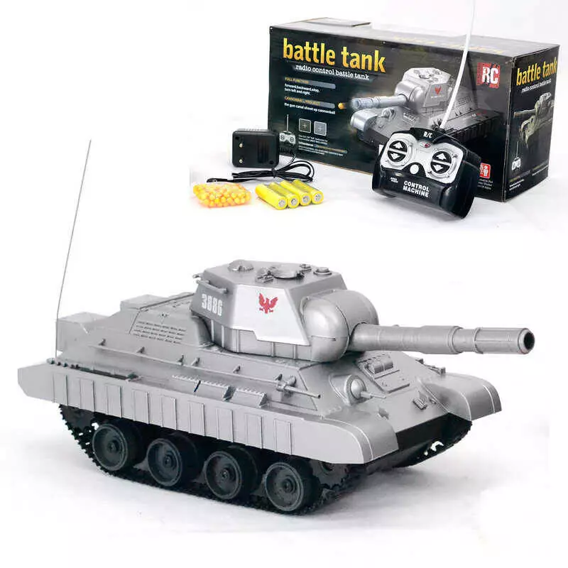 Головна > Каталог > Іграшки > Радіокеровані іграшки > Танк на радіокеруванні 3886 A (24/2) стріляє пульками, звукові ефекти, пульт 27MHz, гусеничний хід, 4 батарейки АА, блок для заряджання, в коробці оптом