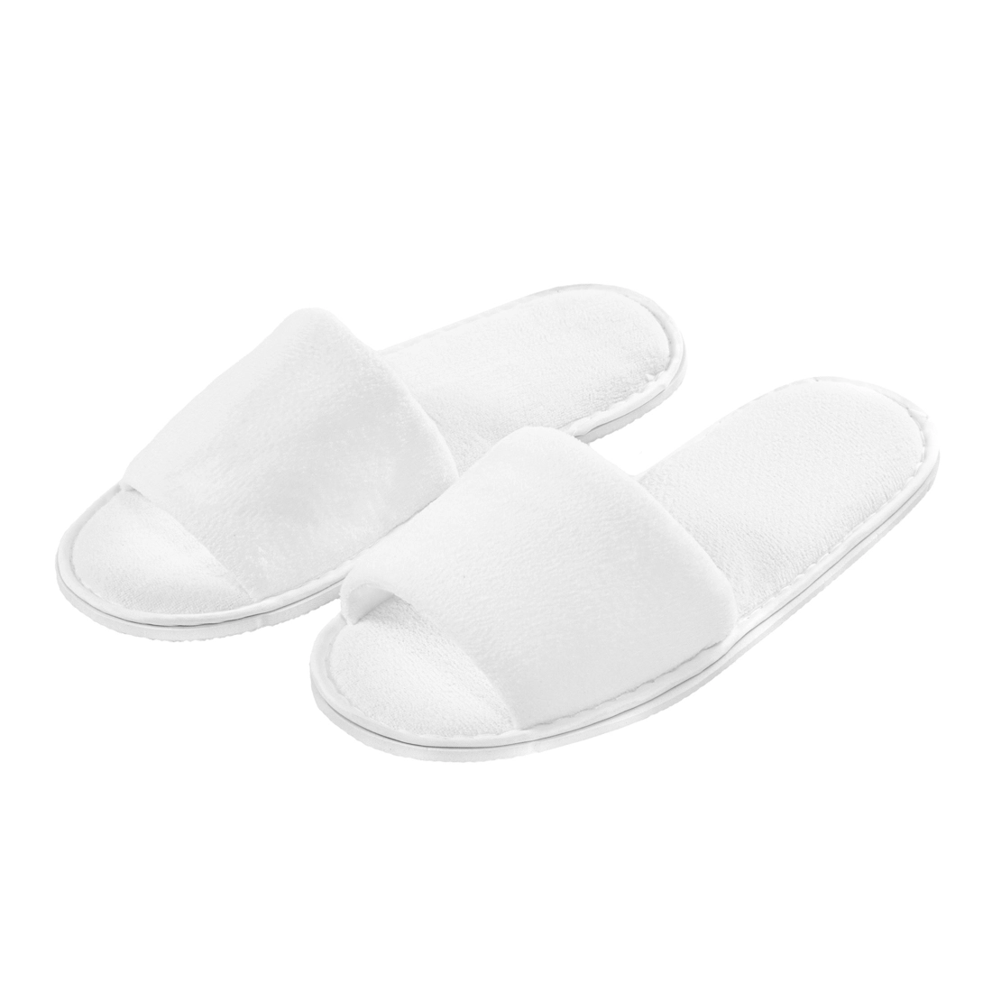 Білі готельні велюрові капці з відкритим носком, розмір 42, підошва 5 мм