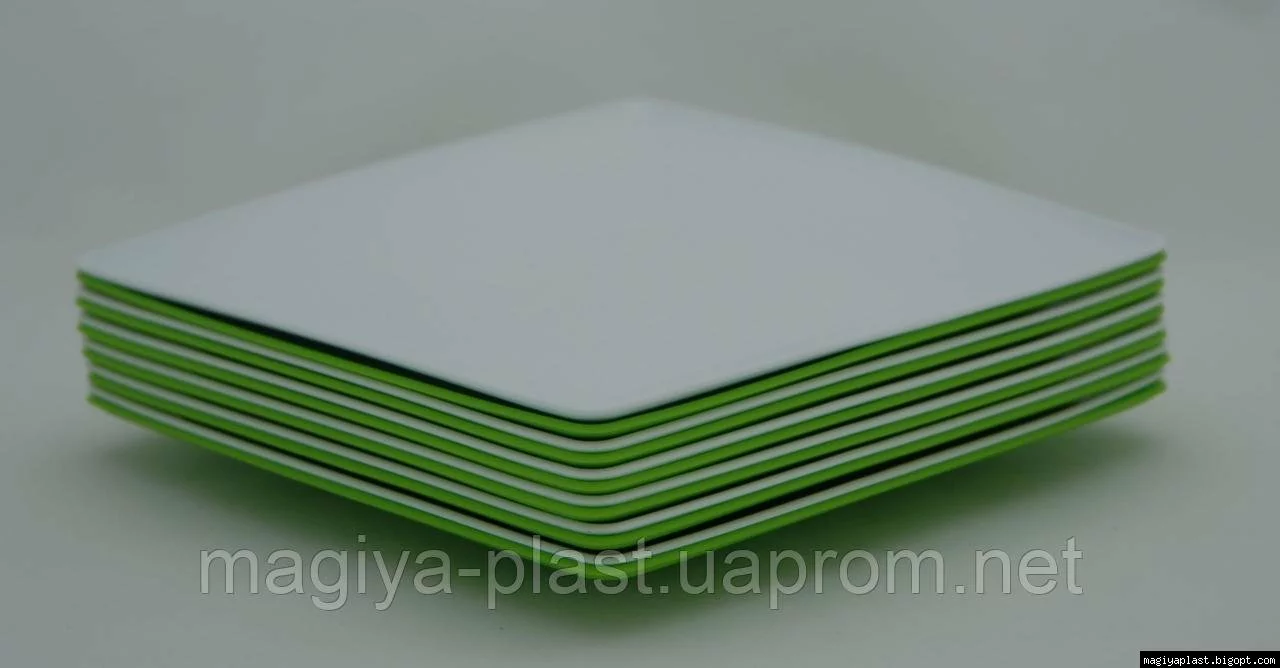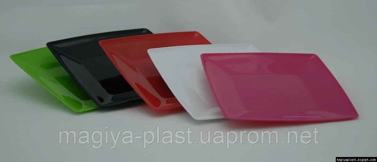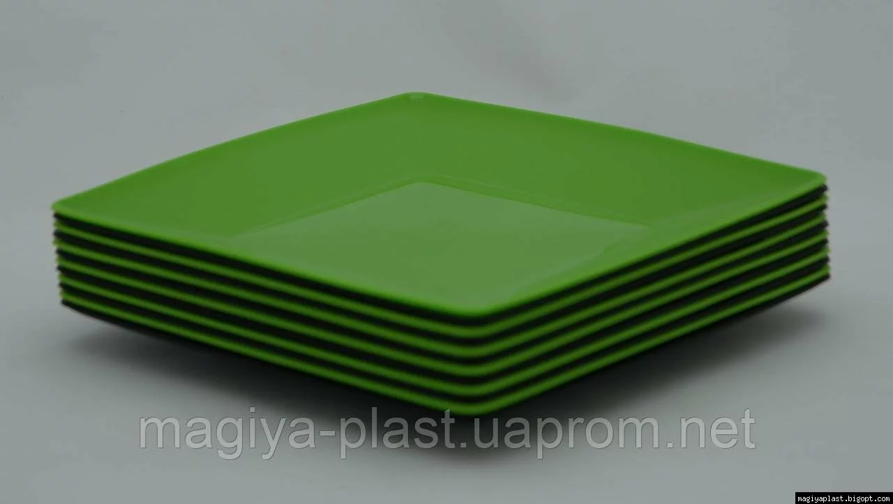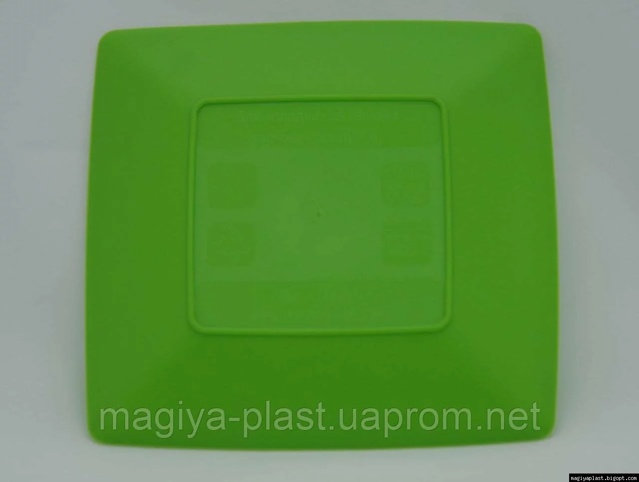 На дне пластмассовой квадратной закусочной (салатной) тарелки 18см