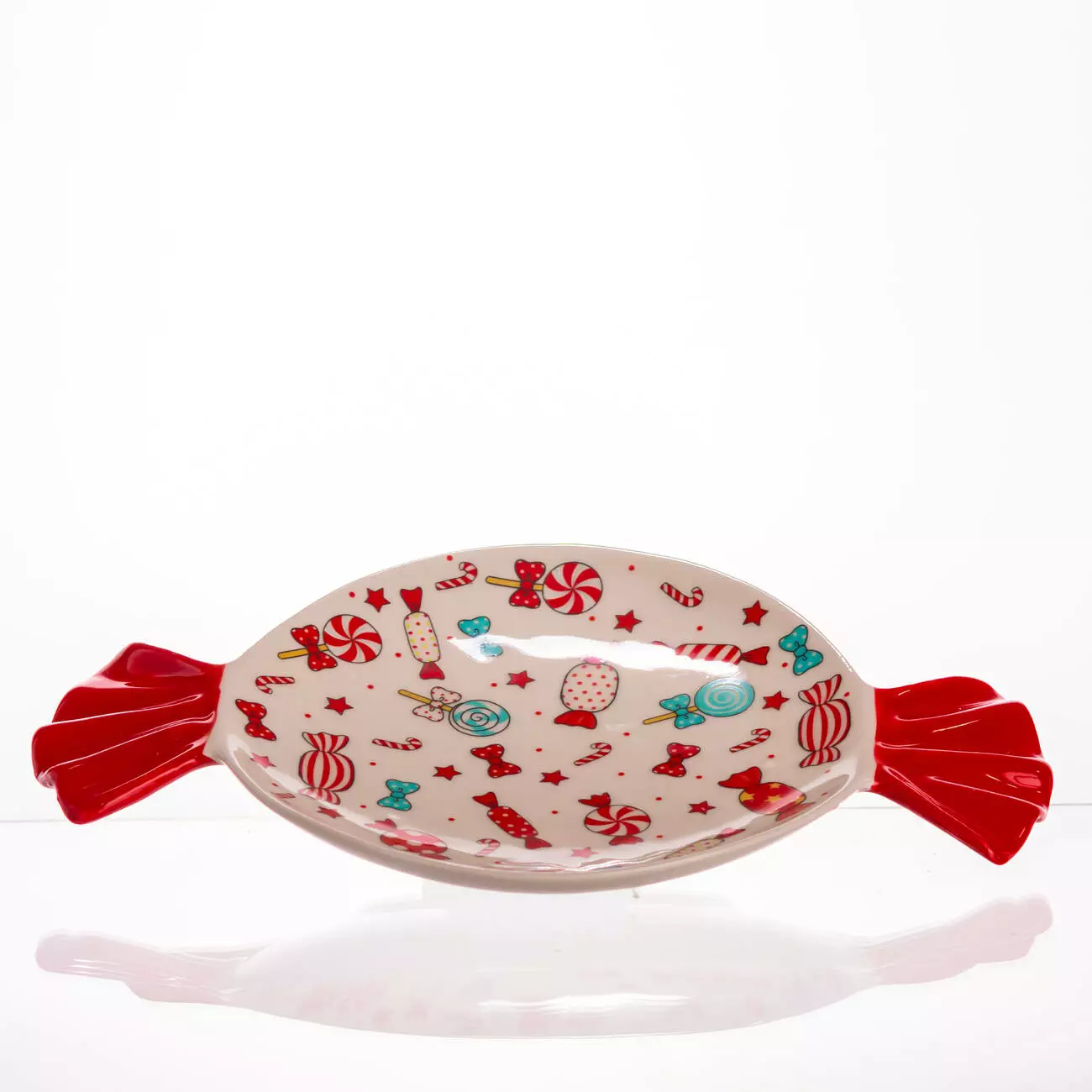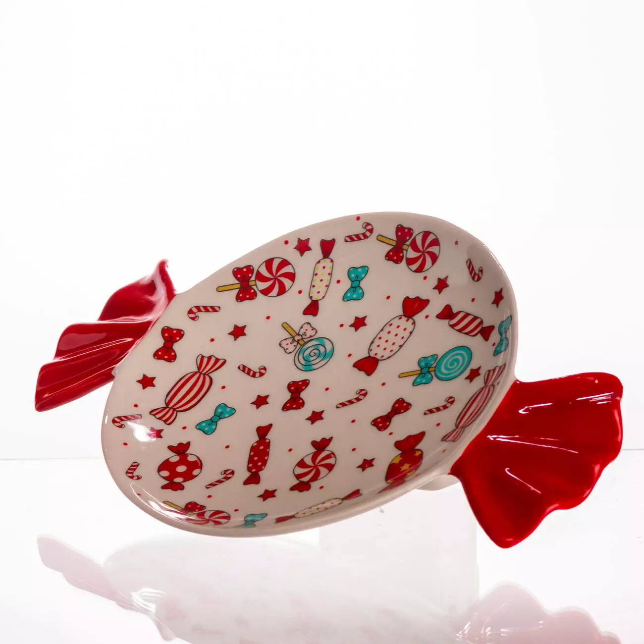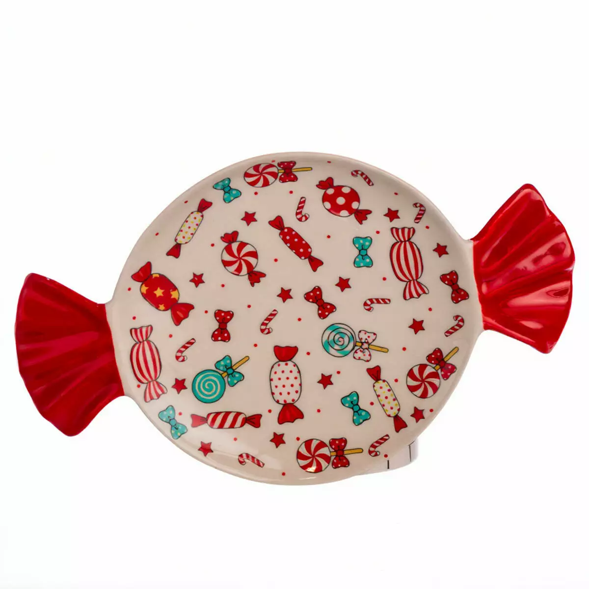 Порцелянова тарілка для десертів Merry Christmas створена для святкової подачі солодощів і стане яскравою окрасою вашого столу. Її оригінальна форма у вигляді цукерки та барвистий малюнок із новорічними мотивами — льодяниками, зірочками та стрічками — додають настрою і роблять сервірування особливим. Така тарілка ідеально підходить для різдвяних частувань або як декоративний елемент у домі.