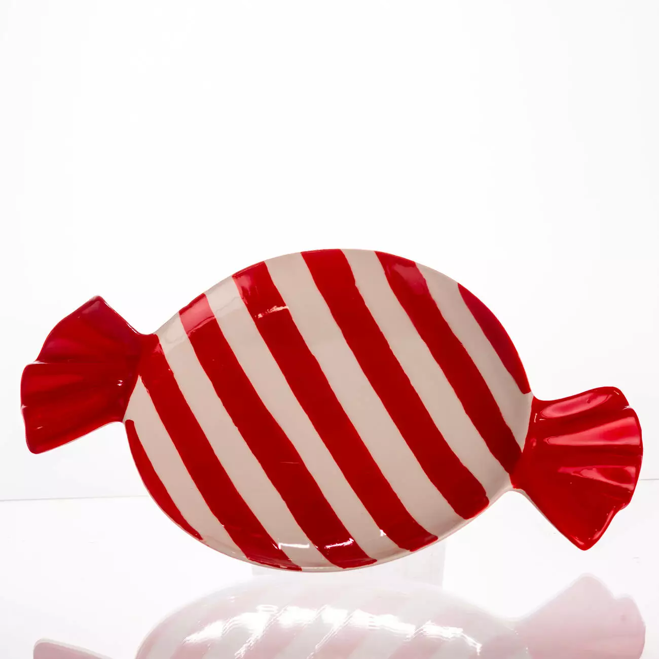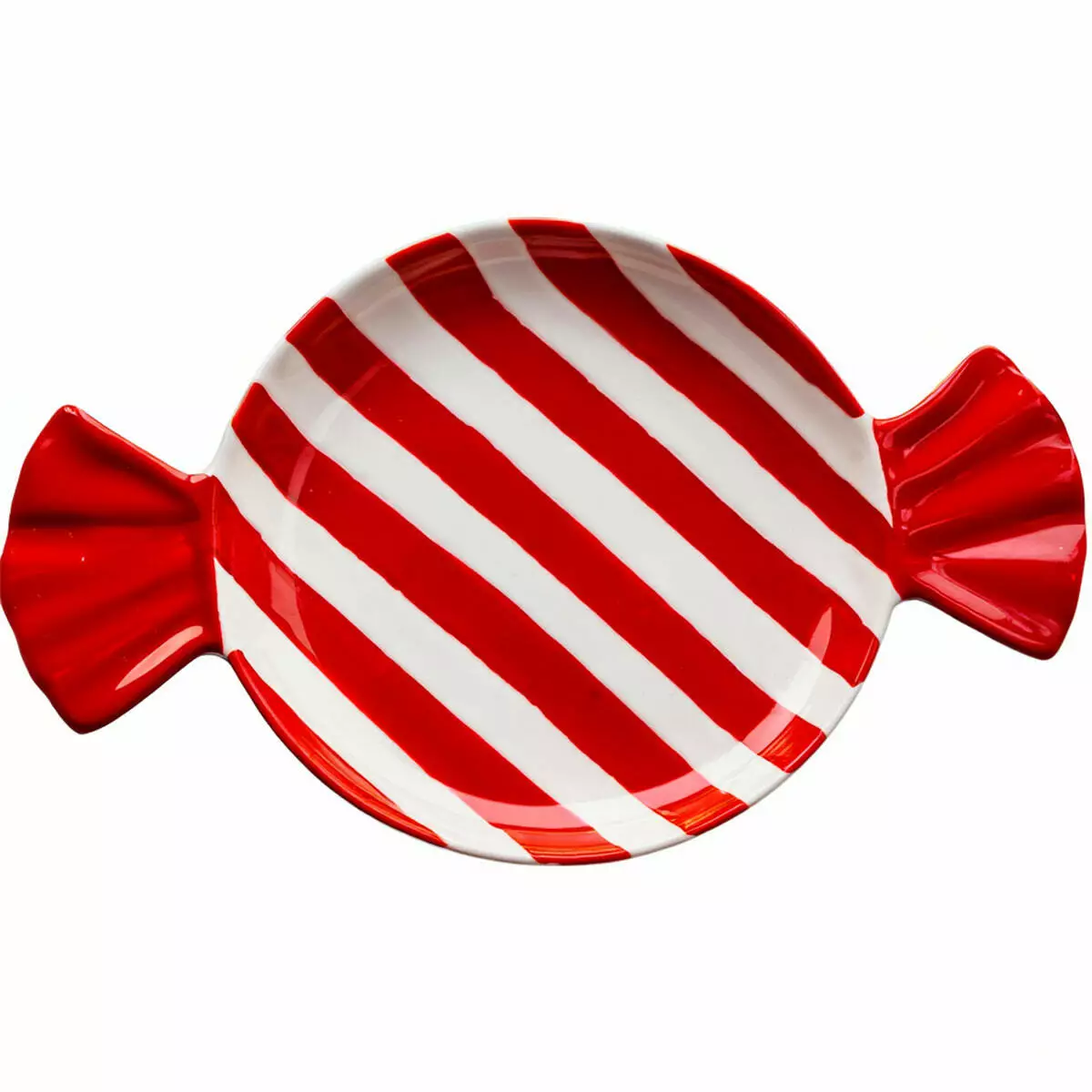 Порцелянова тарілка у формі цукерки — це стильний елемент святкового сервірування. Її оригінальний дизайн із червоними краями у вигляді зав’язок додає виробу виразності та створює теплу атмосферу різдвяного настрою. Завдяки яскравим акцентам і стриманому поєднанню білого та червоного кольорів, тарілка гармонійно вписується як у класичний, так і в сучасний інтер’єр.