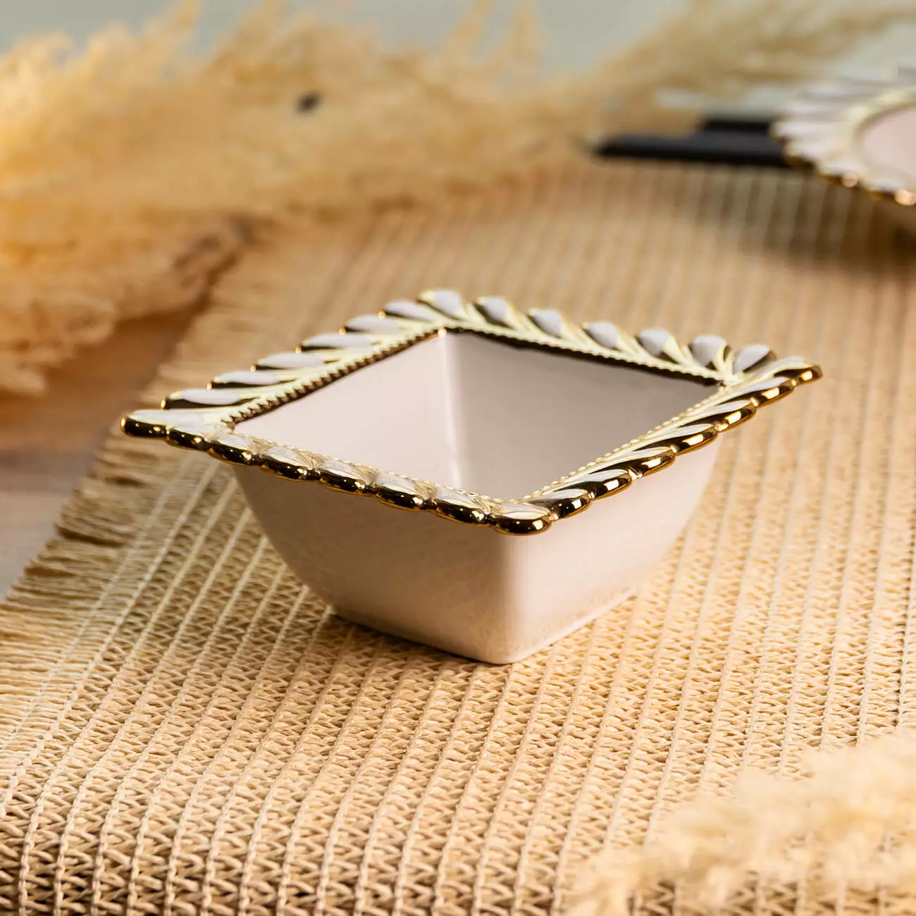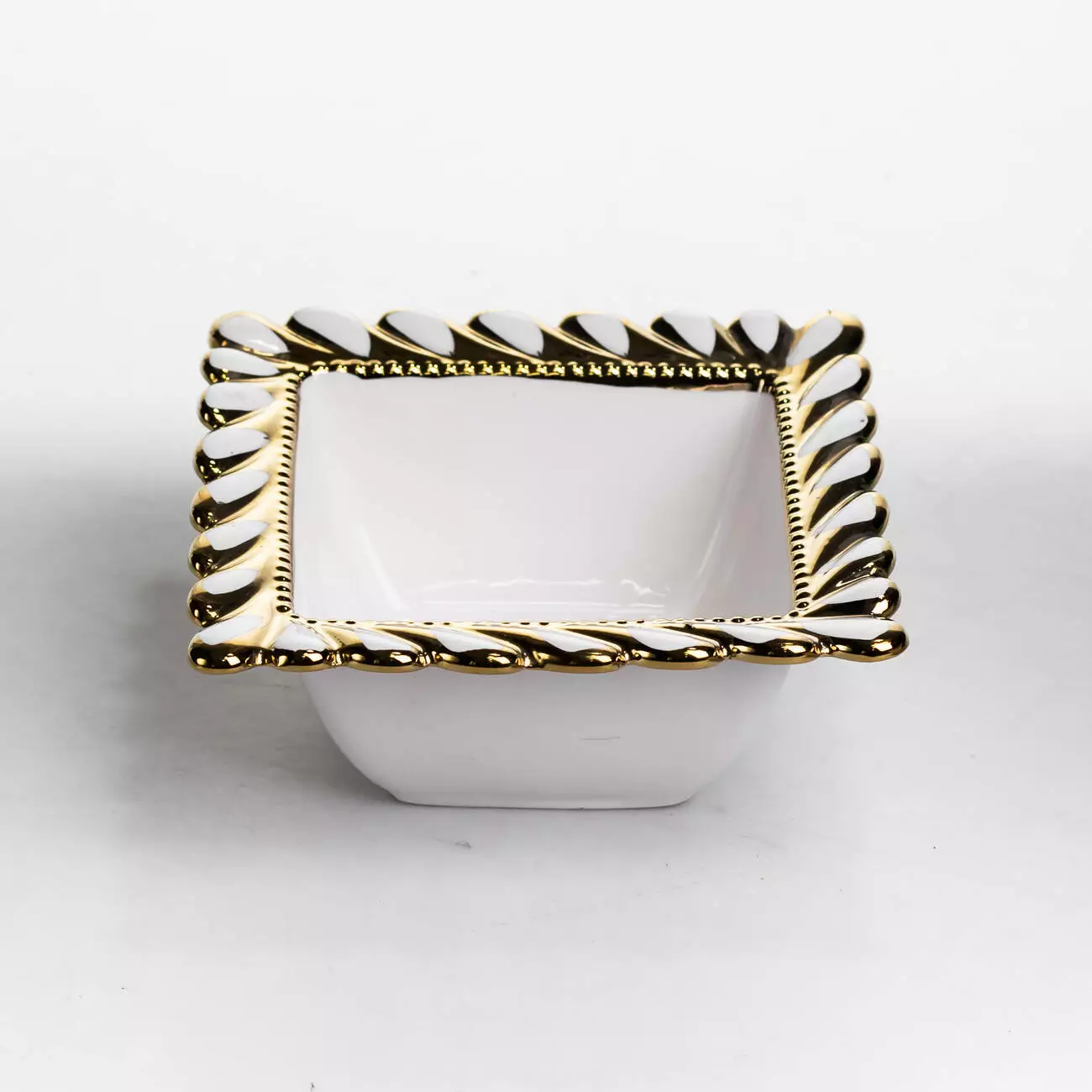Глибока квадратна тарілка Tiffany з порцеляни привертає увагу чіткою геометрією та компактним форматом. Розмір 15×15 см і висота 7 см роблять її зручною для порційної подачі страв, де важлива не лише функціональність, а й акуратний вигляд на столі.