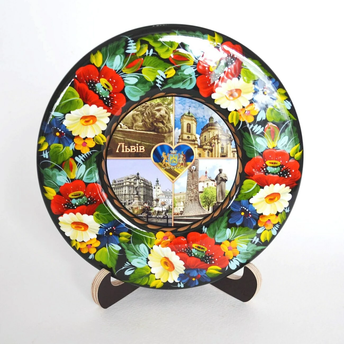 Тарілка Львів пам'ятка ручної роботи, розписана в техніці