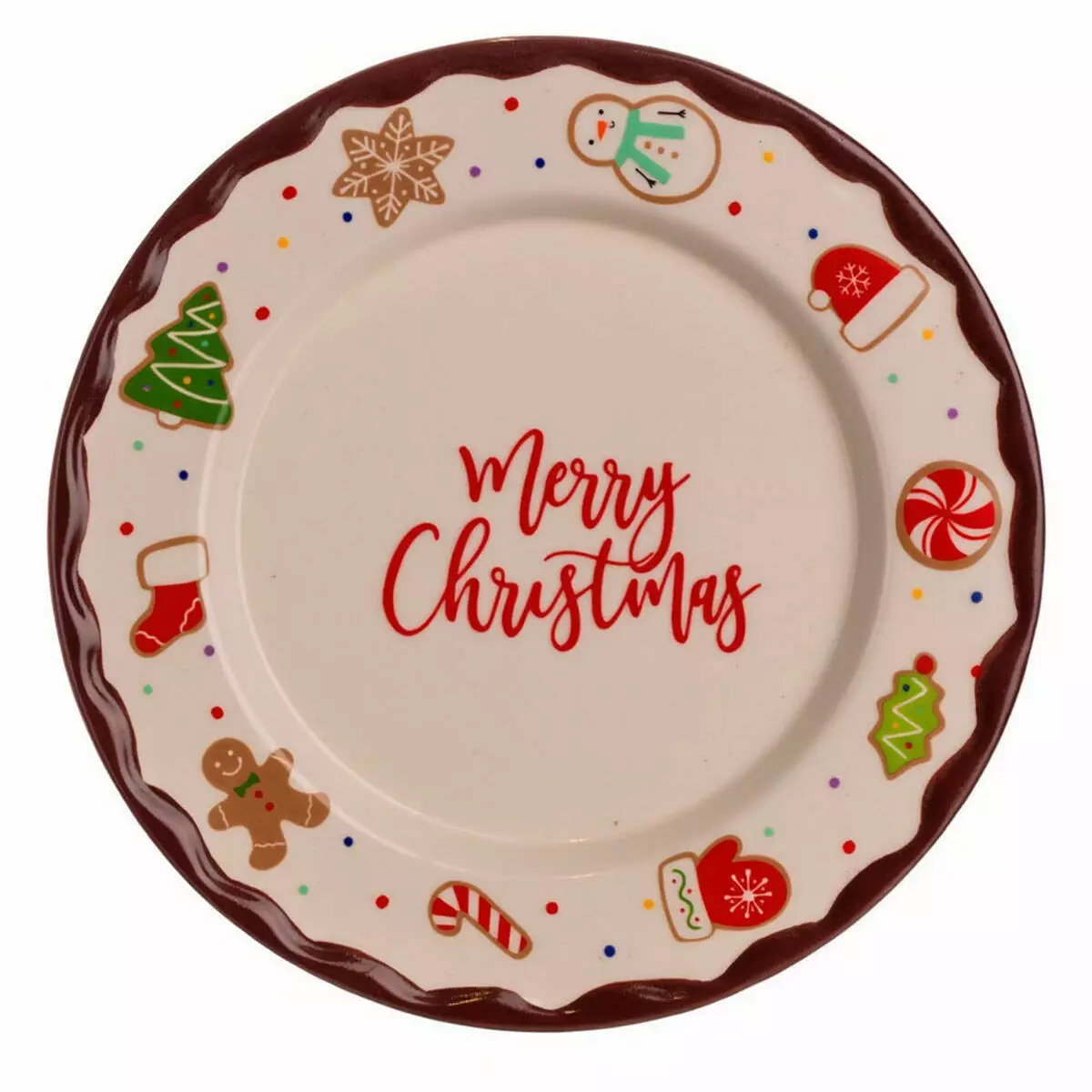 Сервірувальна тарілка Merry Christmas виконана з порцеляни та має діаметр 27.5 см, що дозволяє подавати на ній як гарячі, так і холодні страви. Порцеляновий матеріал забезпечує рівномірне охолодження або підтримання температури страв, а гладка поверхня полегшує миття та догляд. Поверхня тарілки прикрашена святковим малюнком із мотивами рукавичок, ялинок та льодяників, додаючи столу святкового настрою без надмірної яскравості.