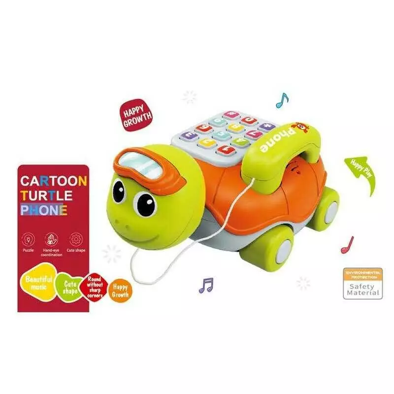 Музична каталка 368-89 G (72) “Черепашка”, підсвічування, на батарейках, звуки, режими гри, ноти, мелодії, сміх, звуки тварин та транспорту, в коробці
