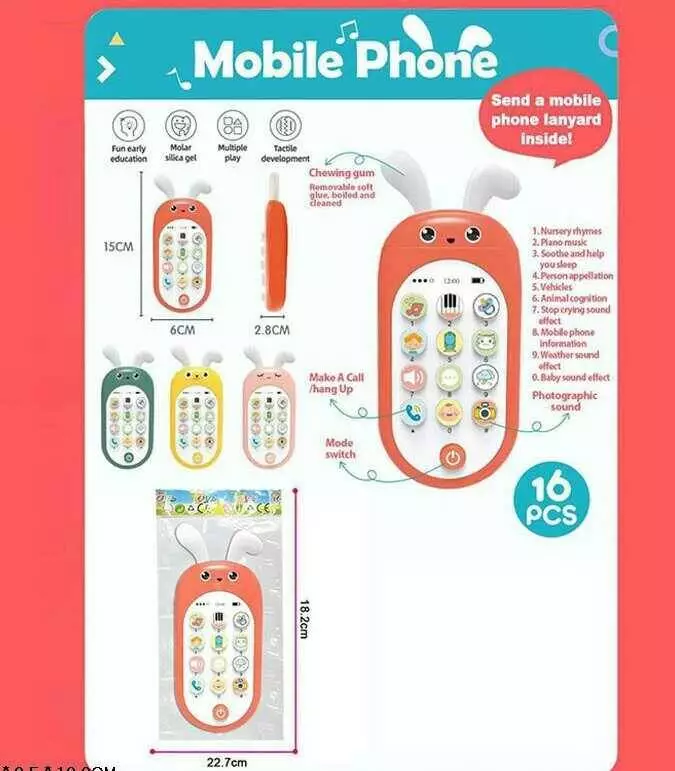 Телефон 3939-152 (480/2) 3 кольори, 1 шт., підсвічування, звуки, на батарейках, гумові елементи, мелодії, в пакеті, ВИДАЄТЬСЯ МІКС