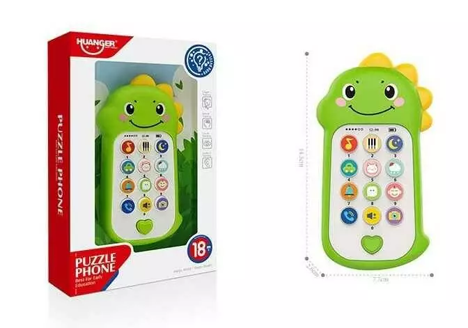 Головна > Каталог > Телефон HE 0558 (72/2) “Динозавр”, підсвічування, озвуч. англ. мовою, звуки, цифри, назви та звуки тварин, мелодії, пісні, в коробці оптом