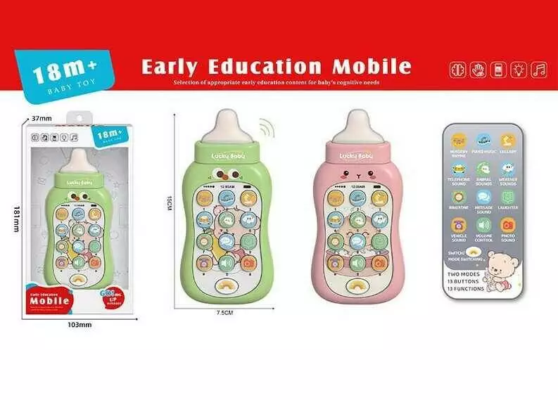 Головна > Каталог > Телефон YL 626-53 (288/2) гумовий прорізувач, 2 режими, світло, звуки тварин, цифри, пісні, озвуч. англ. мовою, на батарейка, в коробці оптом