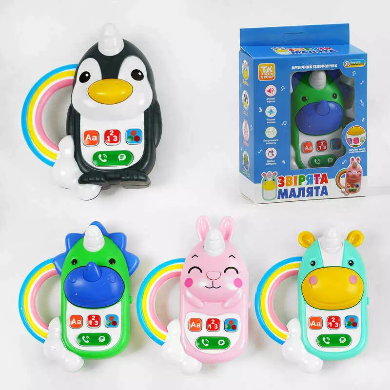 Головна > Каталог > Телефон "Звірята-малята" ТК - 80492 (72) "TK Group", 4 види, ОЗВУЧ. УКРАЇНСЬКОЮ МОВОЮ, алфавіт, цифри, кольори, пісні, в коробці, ВИДАЄТЬСЯ МІКС ВИДІВ оптом