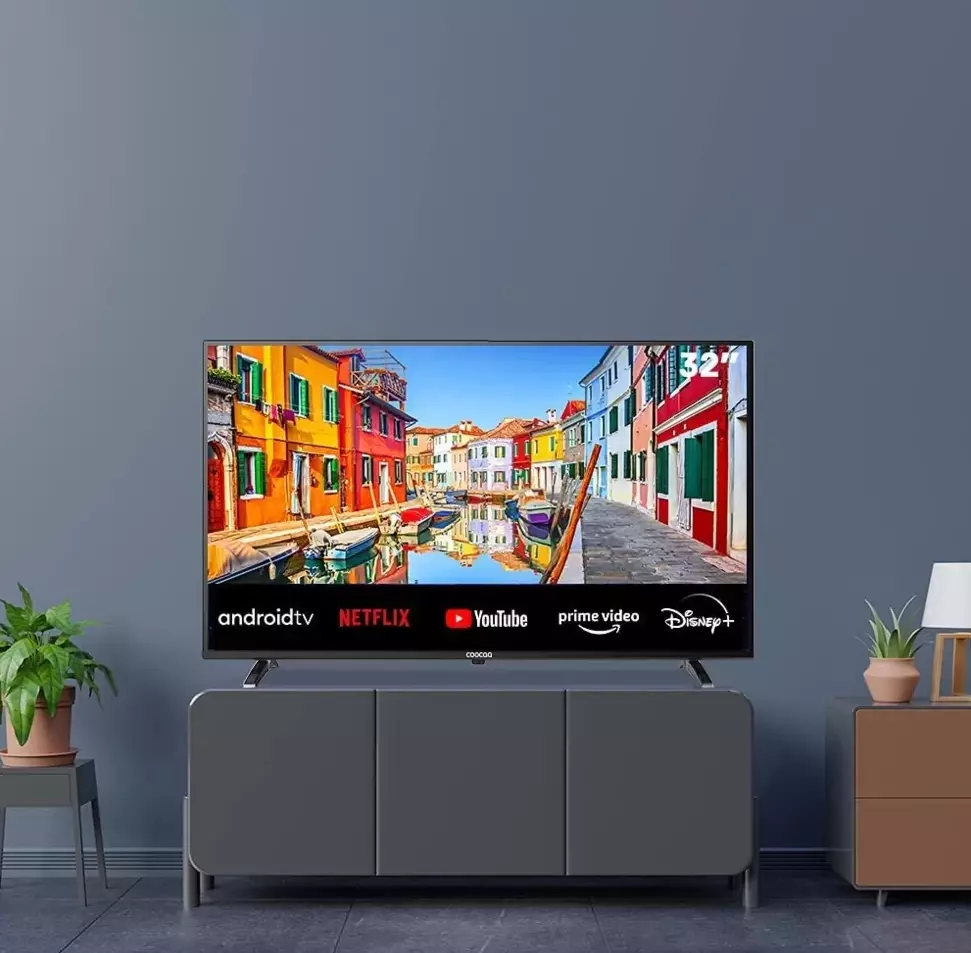 32-дюймовий HD-телевізор Android Smart TV із потрійним тюнером ультратонкий дизайн Coocaa Smart TV вражає своїм надзвичайно тонким дизайном та вузькою вбудованою рамкою.  Пристрій має товщину всього 9 см, що робить його ідеальним для настінного монтажу.