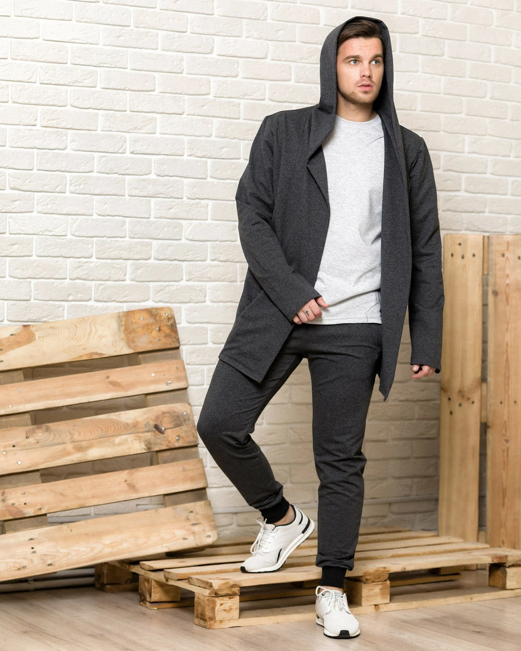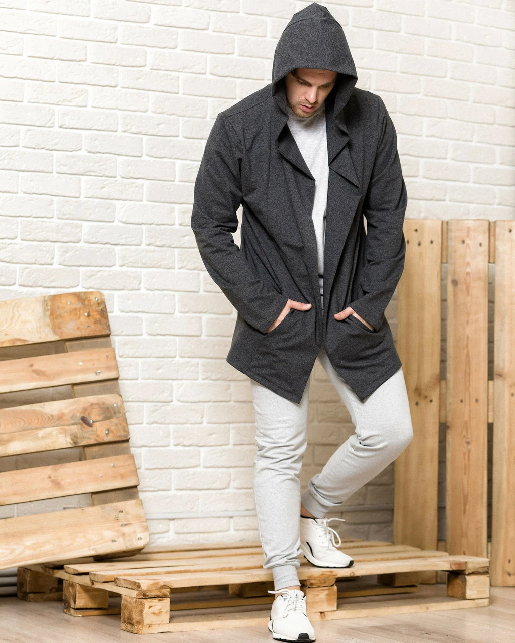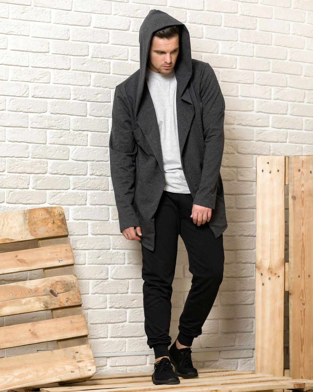 Темно-серая мантия с капюшоном мужская и женская (кочевняя мантия унисекс, накидка, кардиган)