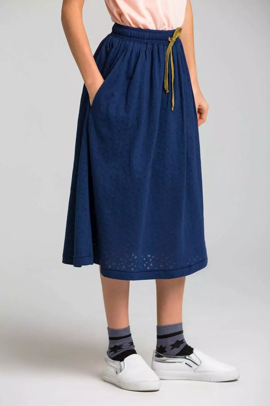 Трикотажна спідниця нижче колін з дрібними зірочками. Для дівчаток від 5 до 15 років.