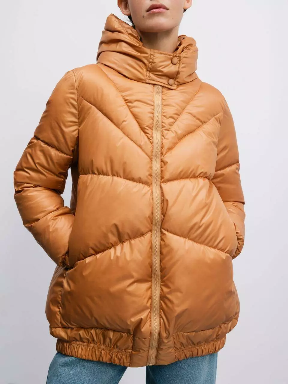 поєднанням стилю та комфорту з нашою стьобаною курткою карамельного