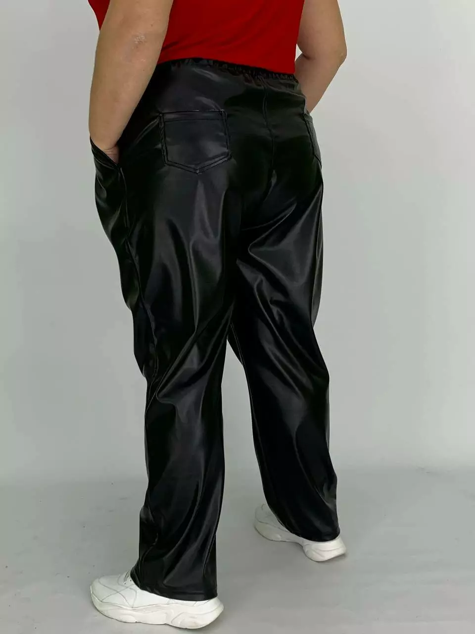 Теплі Стильні штани "Брайтон-3" екошкіра на флісі вільного крою Батал 70-72 74-72
