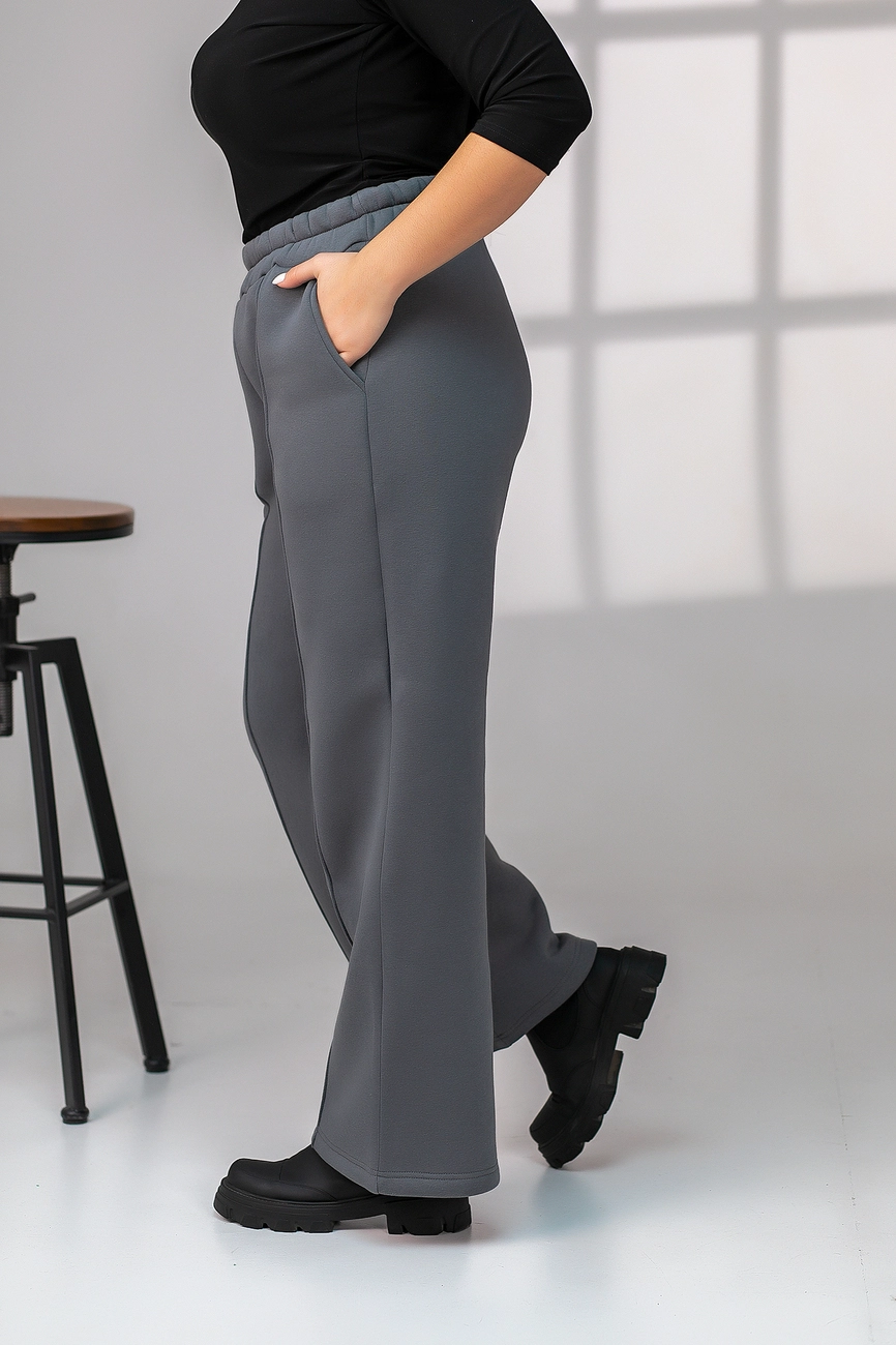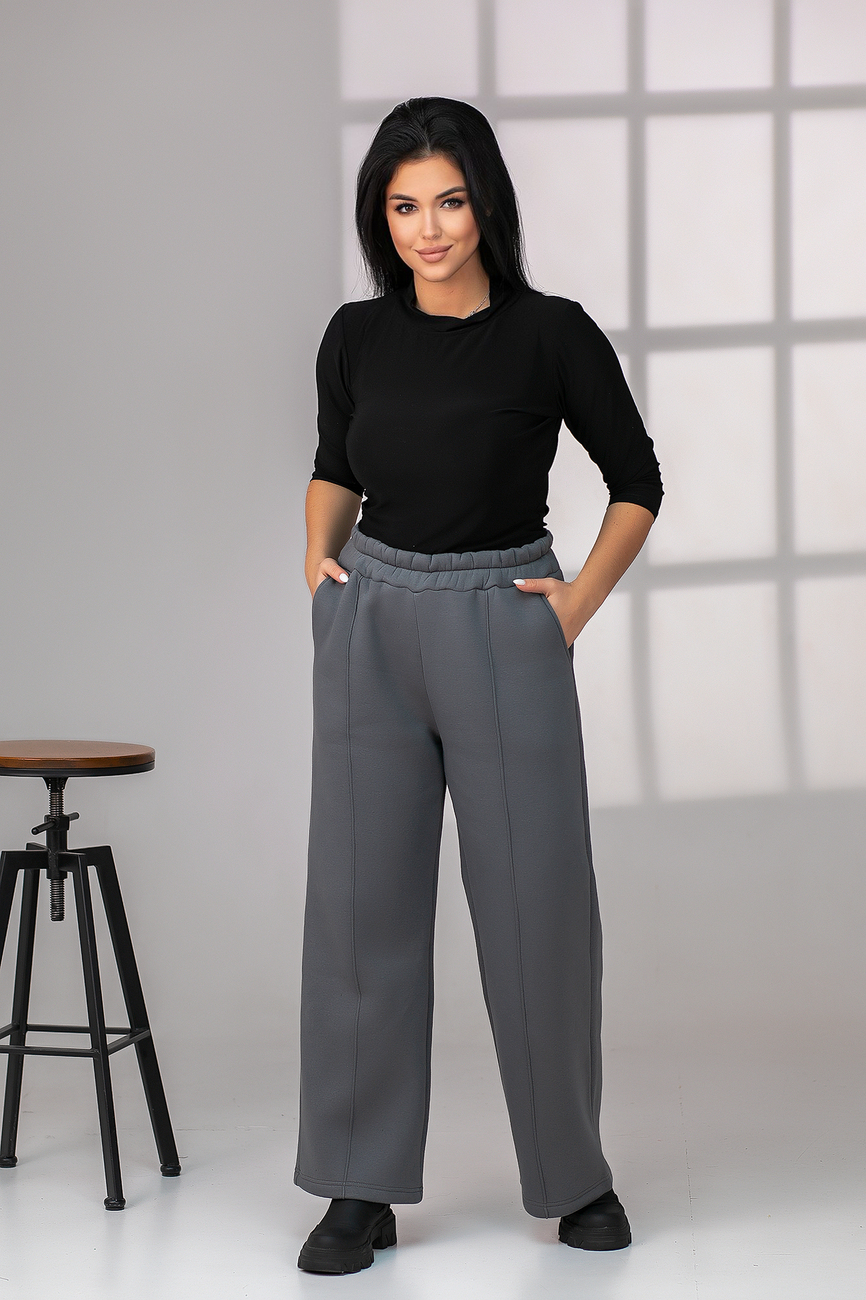 Штани жіночі утеплені вільного крою "Палаццо" сірого кольору
