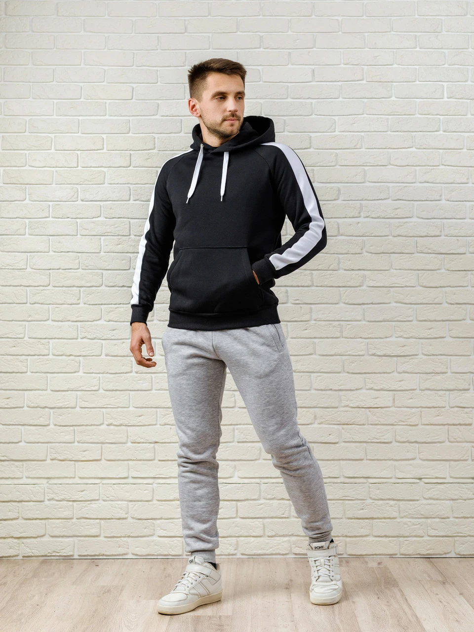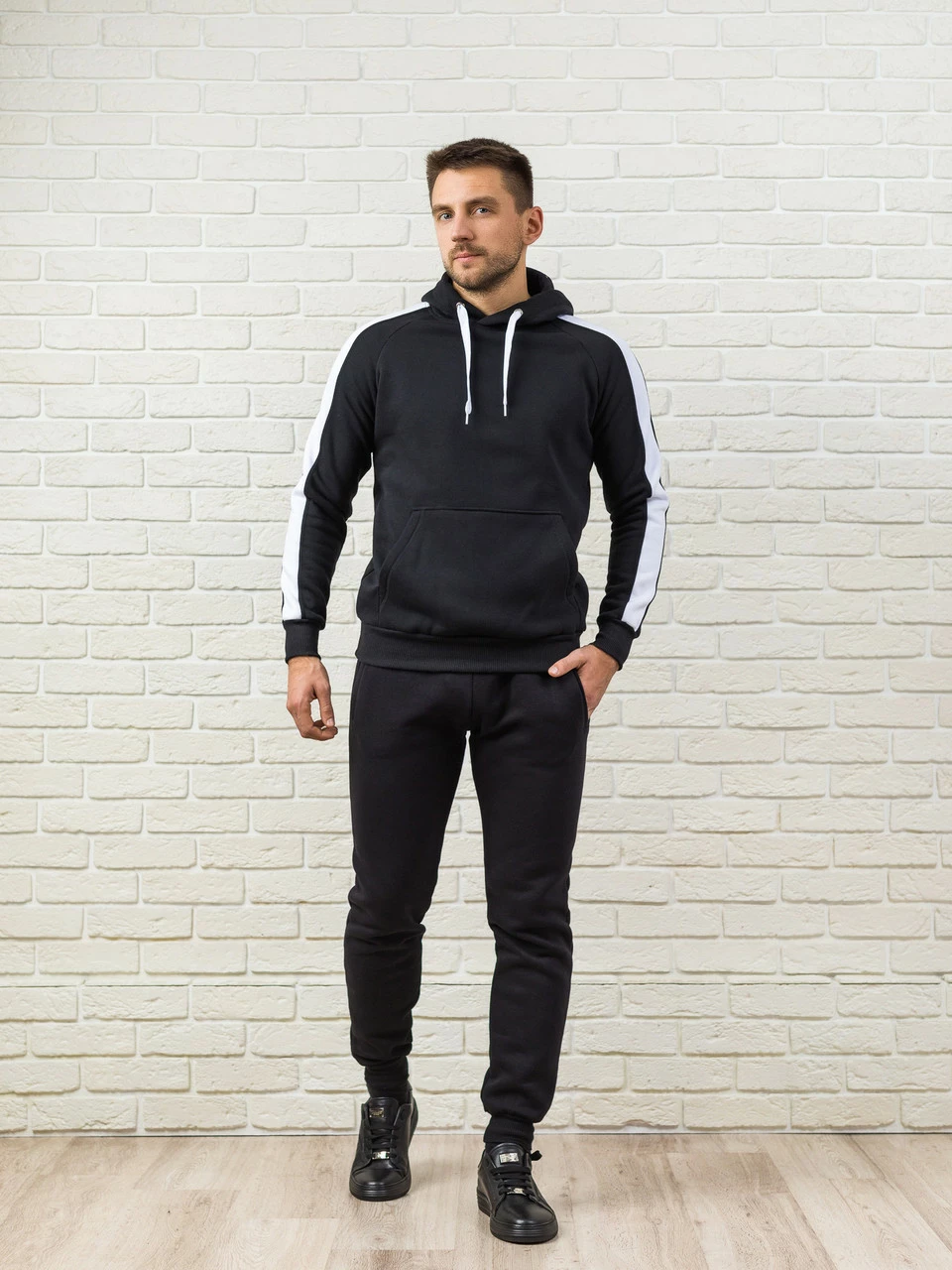Теплый мужской спортивный костюм, черная худи с лампасами и теплые спортивные штаны (цвет на выбор)