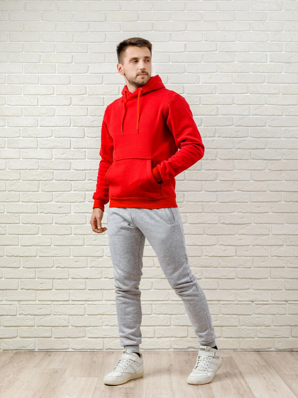 Теплый мужской спортивный костюм, красная худи и теплые спортивные штаны (цвет на выбор)