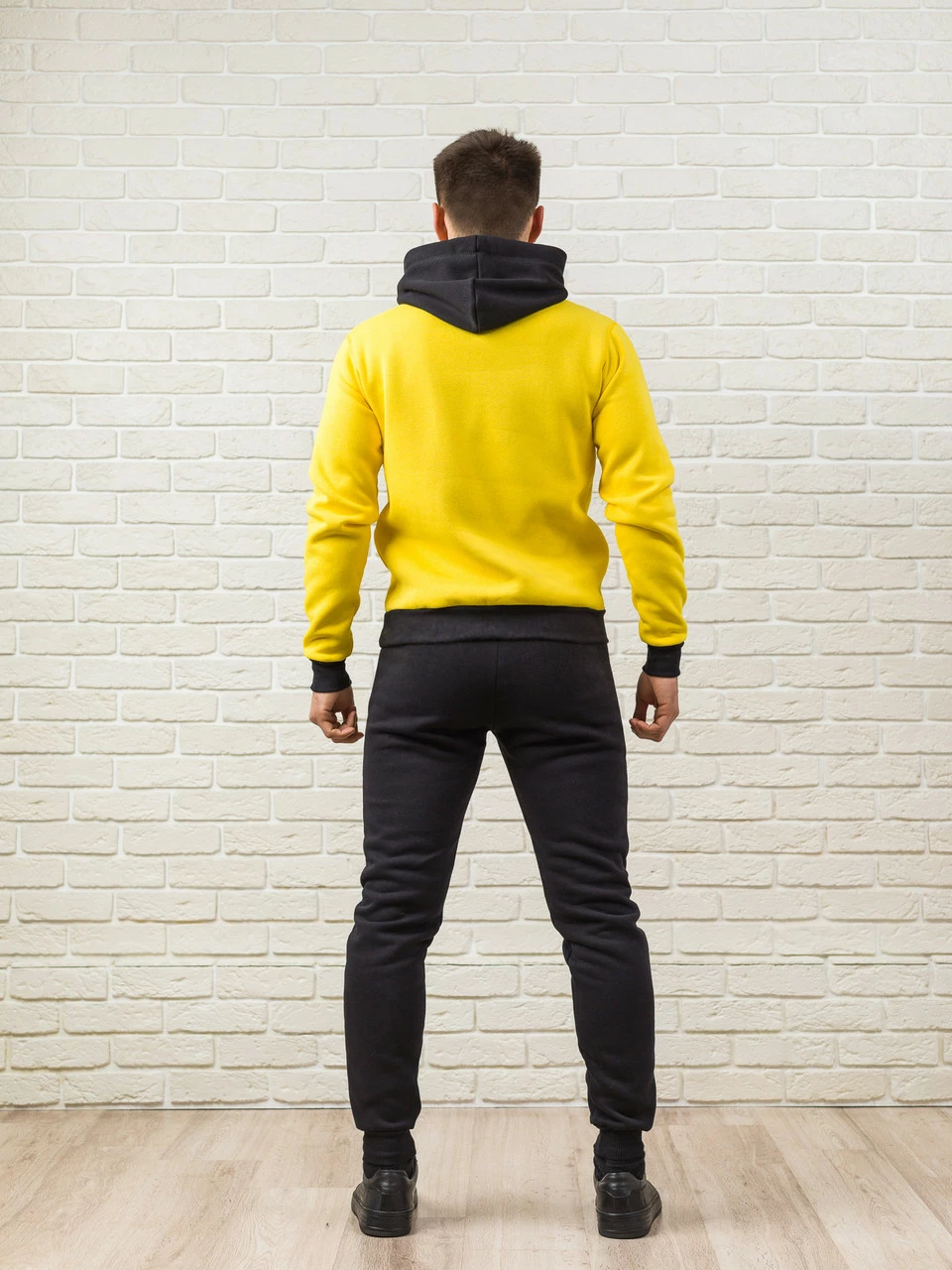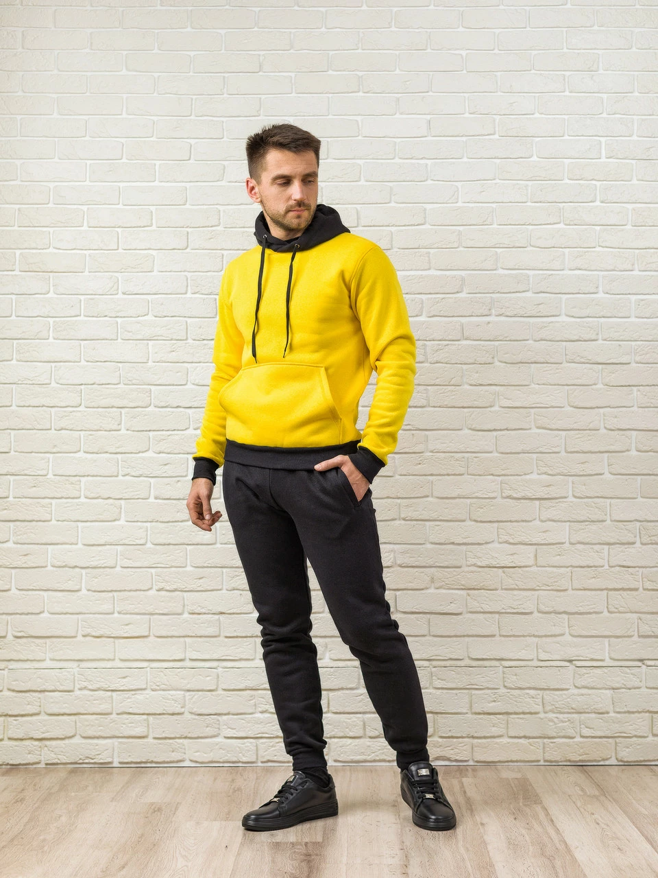 Теплый мужской спортивный костюм, желтая худи с капюшоном и мужские теплые спортивные штаны (цвет на выбор)
