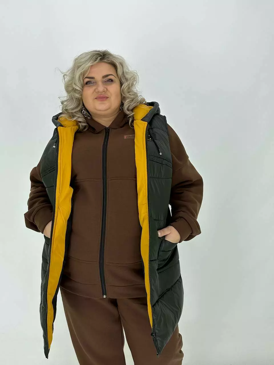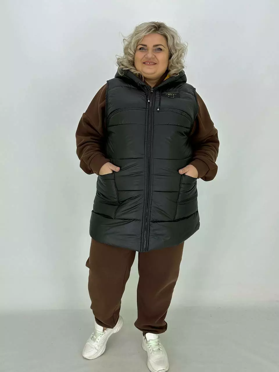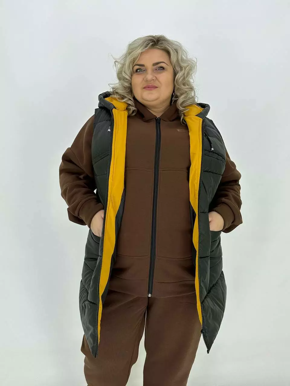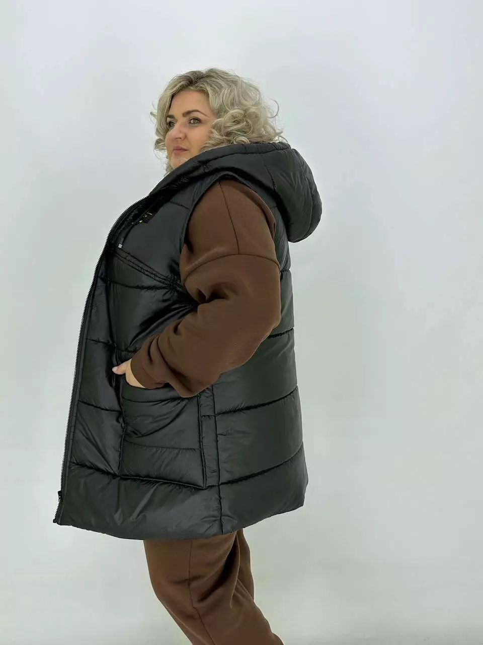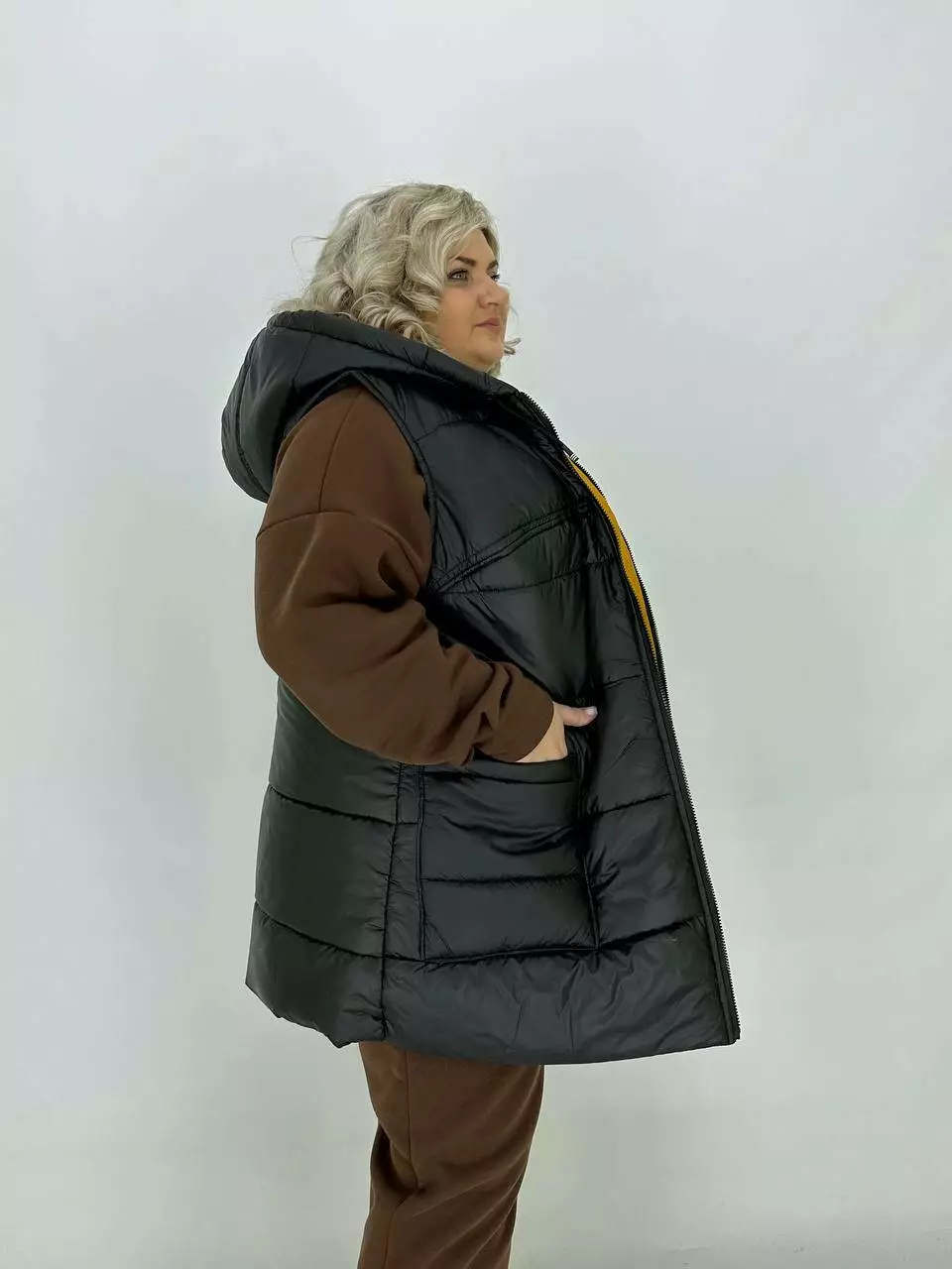 Теплий стьобаний жилет з плащової тканини "Людиця" 62-64 66-68 70-72