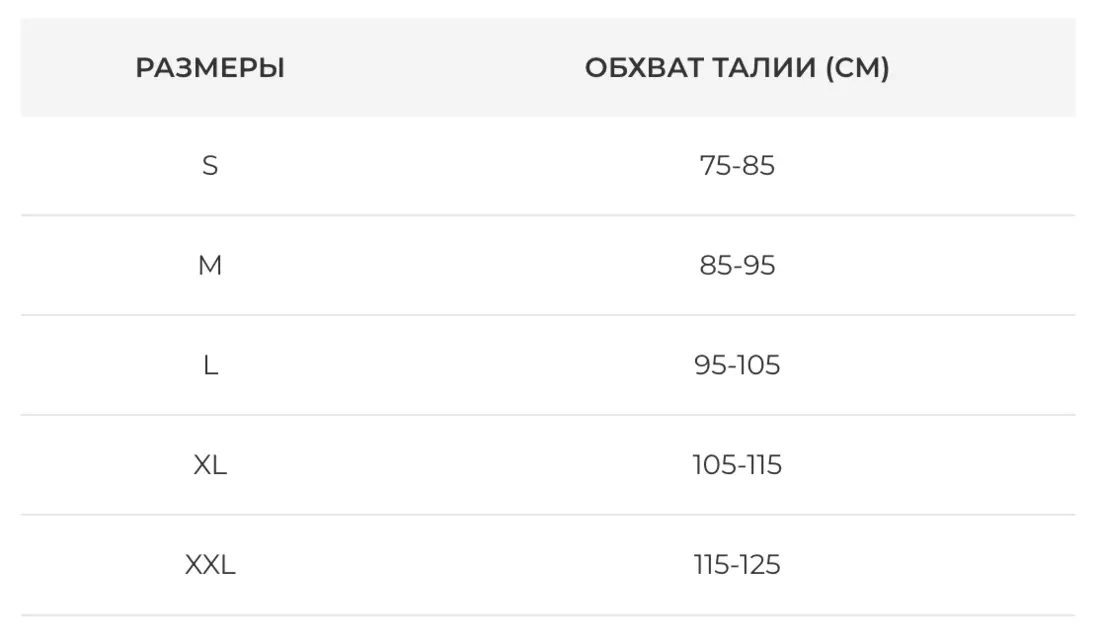 РОЗМІРИ ОБХВАТ ТАЛІЇ (CM)