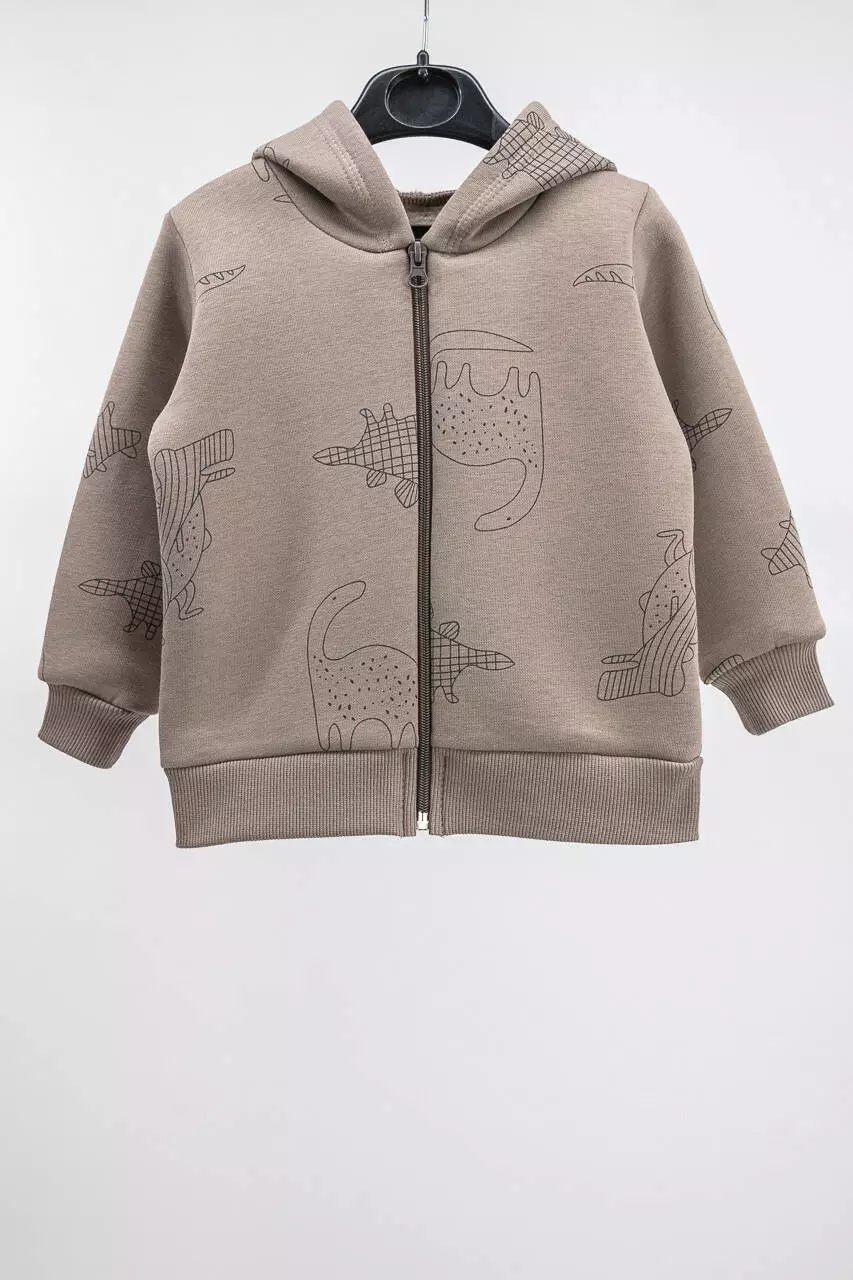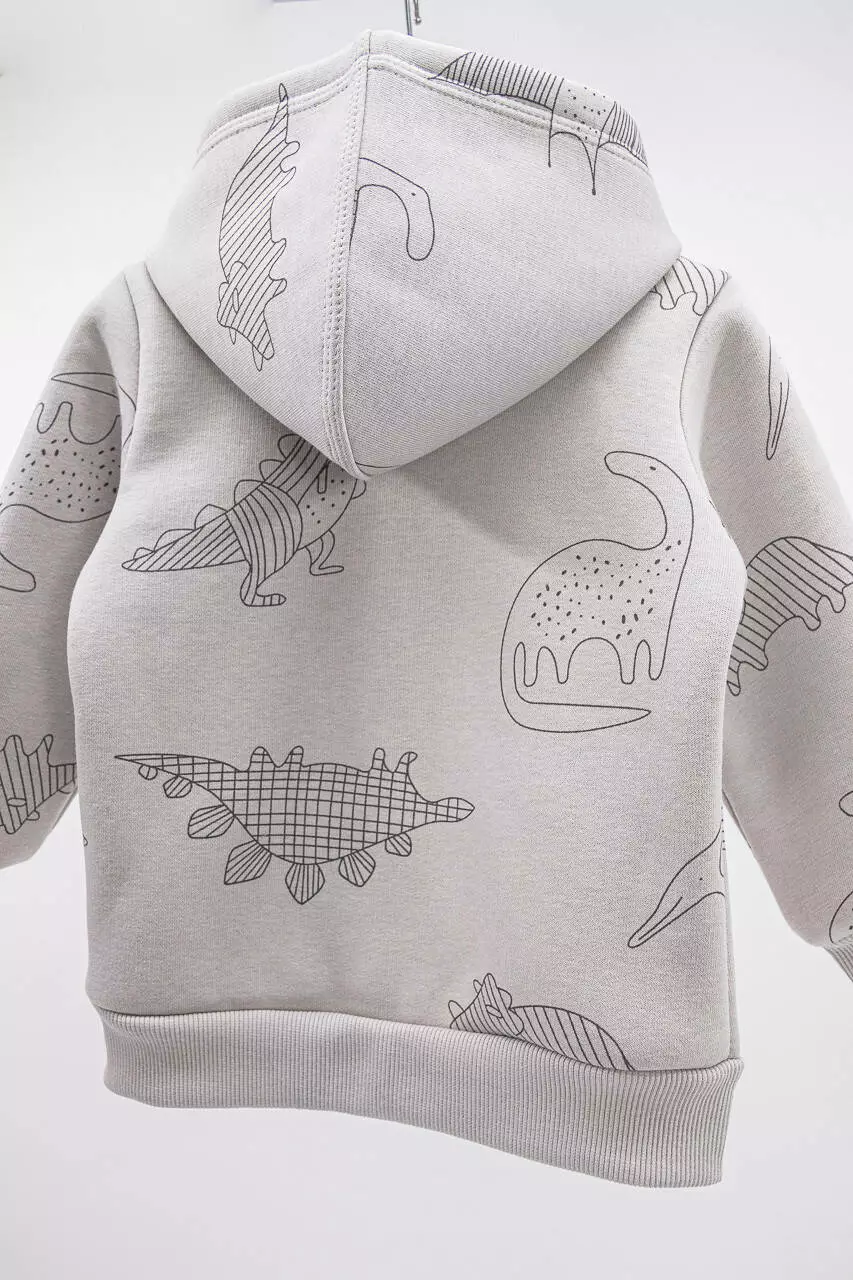 Кофта на молнии имеет капюшон, на рукавах и внизу трикотажный