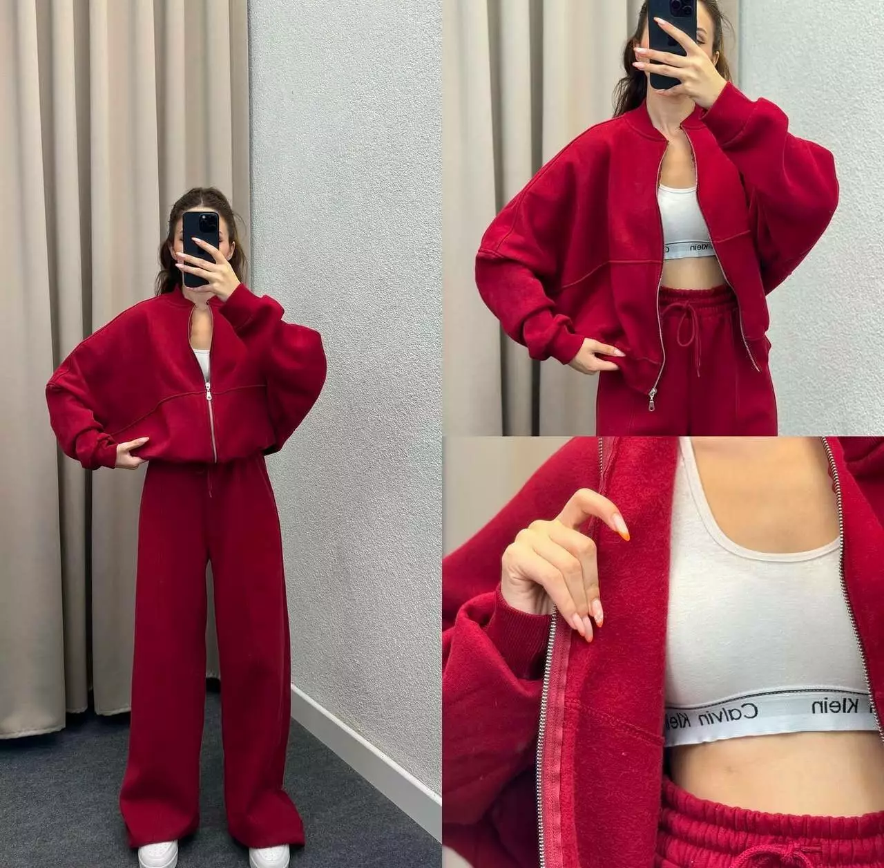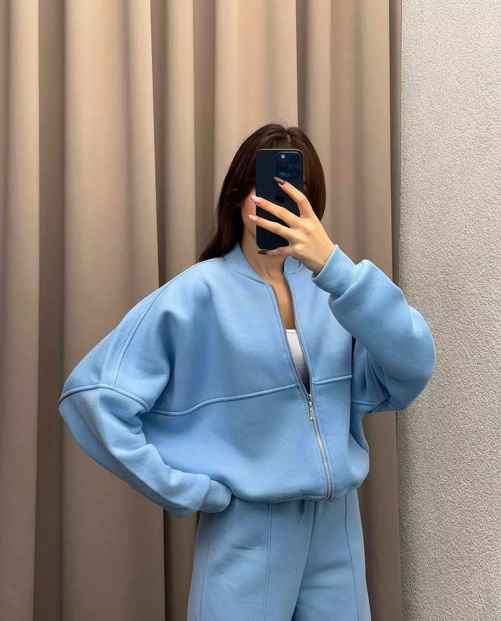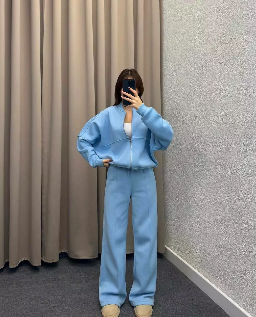 Теплий жіночий спортивний костюм тринитка на флісі, кофта на блискавці та штани палацо