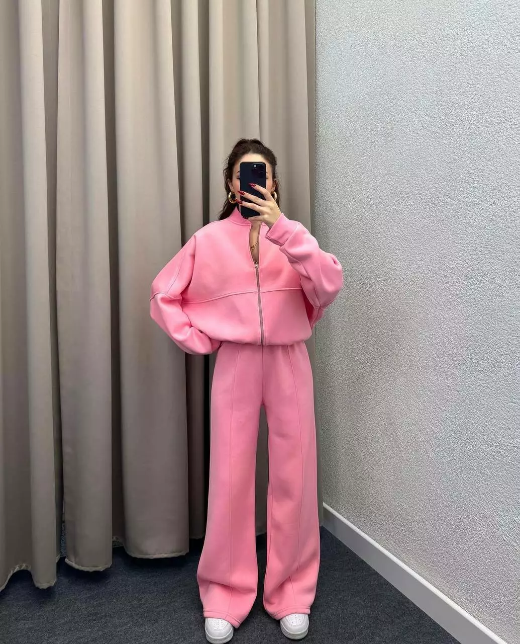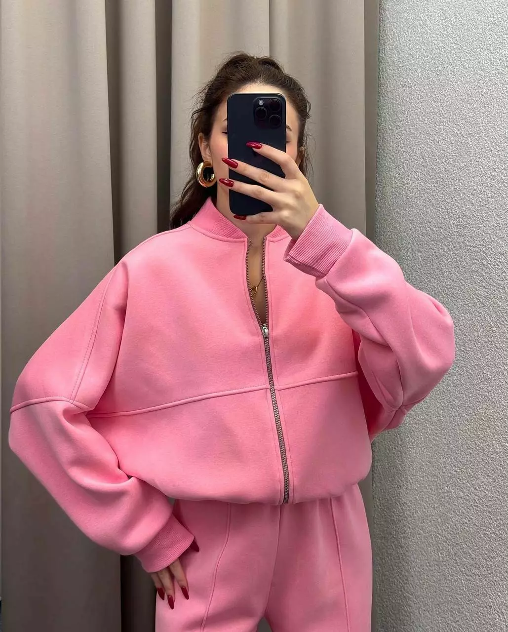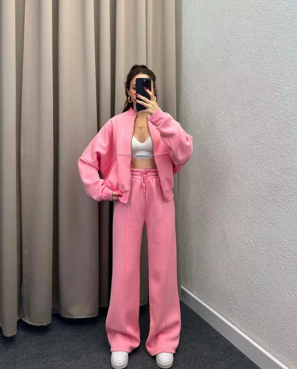 Теплий жіночий спортивний костюм тринитка на флісі, кофта на блискавці та штани палацо
