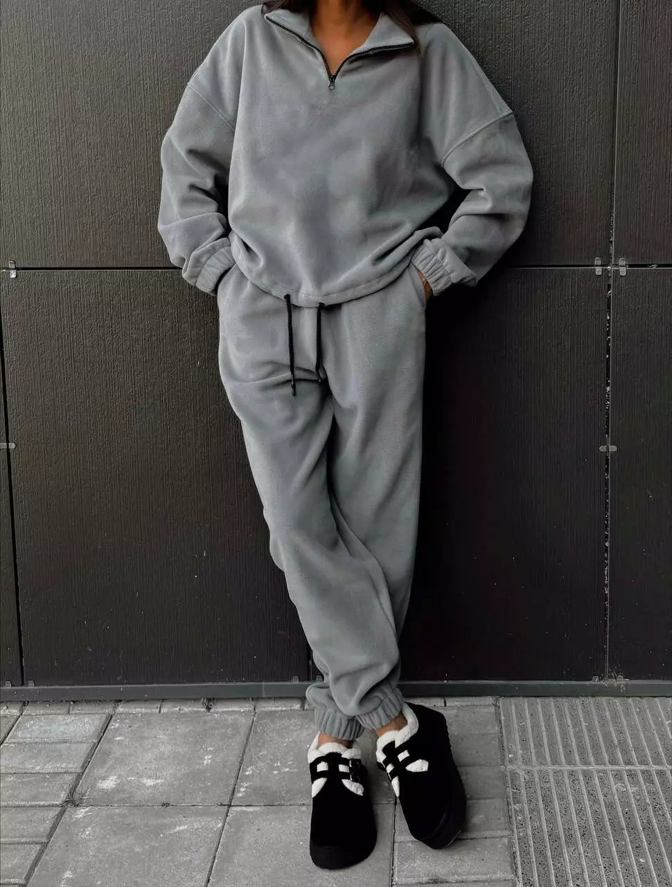 Теплий жіночий зимовий спортивний флісовий костюм оверсайз
