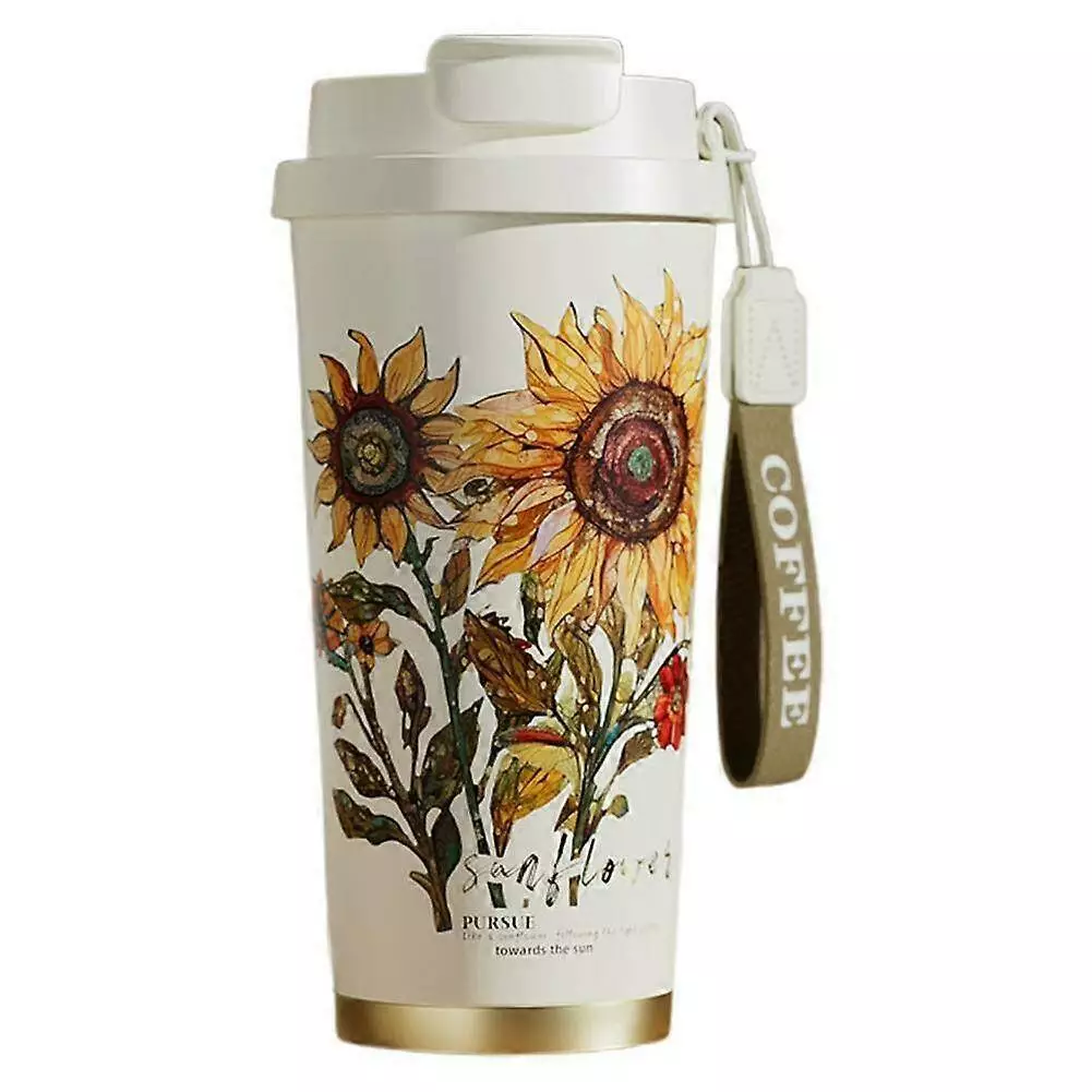 Термочашка 520 мл поєднує функціональність і продуману конструкцію для щоденного використання. На корпусі розміщений квітковий принт із написом. Модель оснащена герметичною кришкою з подвійним відкриванням: окремий клапан для пиття та додатковий отвір для використання трубочки. Збоку закріплений текстильний ремінець із написом “COFFEE”.