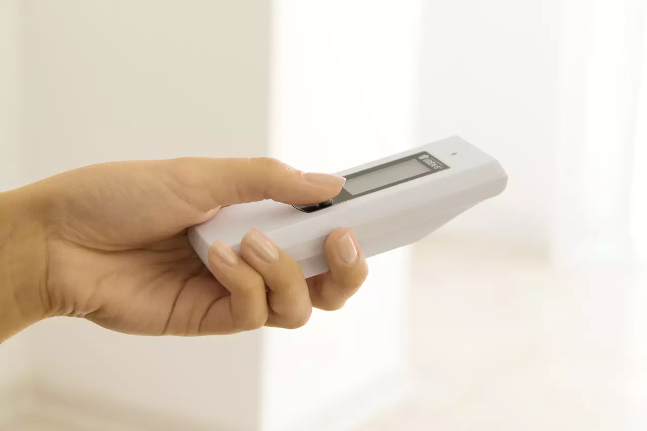 Просте управління терморегулятором з допомогою дистанційного пульта, який передає сигнал на відстані до 40 м. Розміщуйте пульт в зручному для вас місці за допомогою отворів для кріплення на стіну або ніжки-підставки для настільного положення.