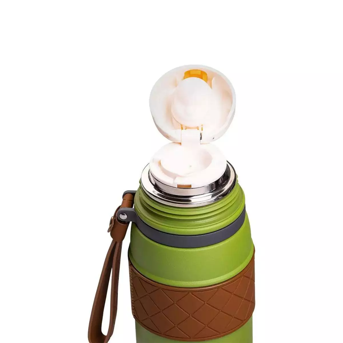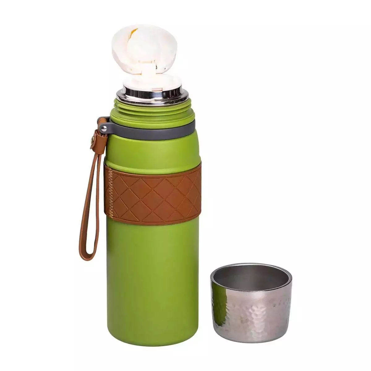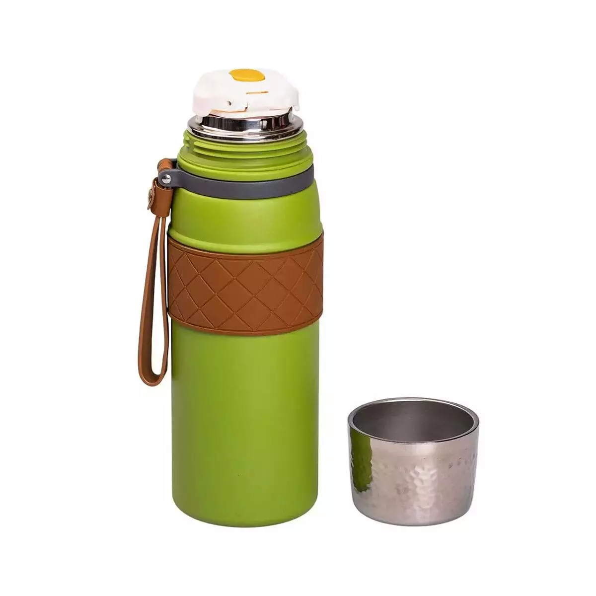 Термос 700 мл з кришкою фліп топ і ситечком, зелений