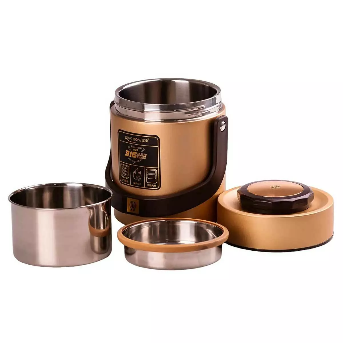 Термос для їжі King Boss 1,5 л з двома контейнерами з нержавіючої сталі, золото