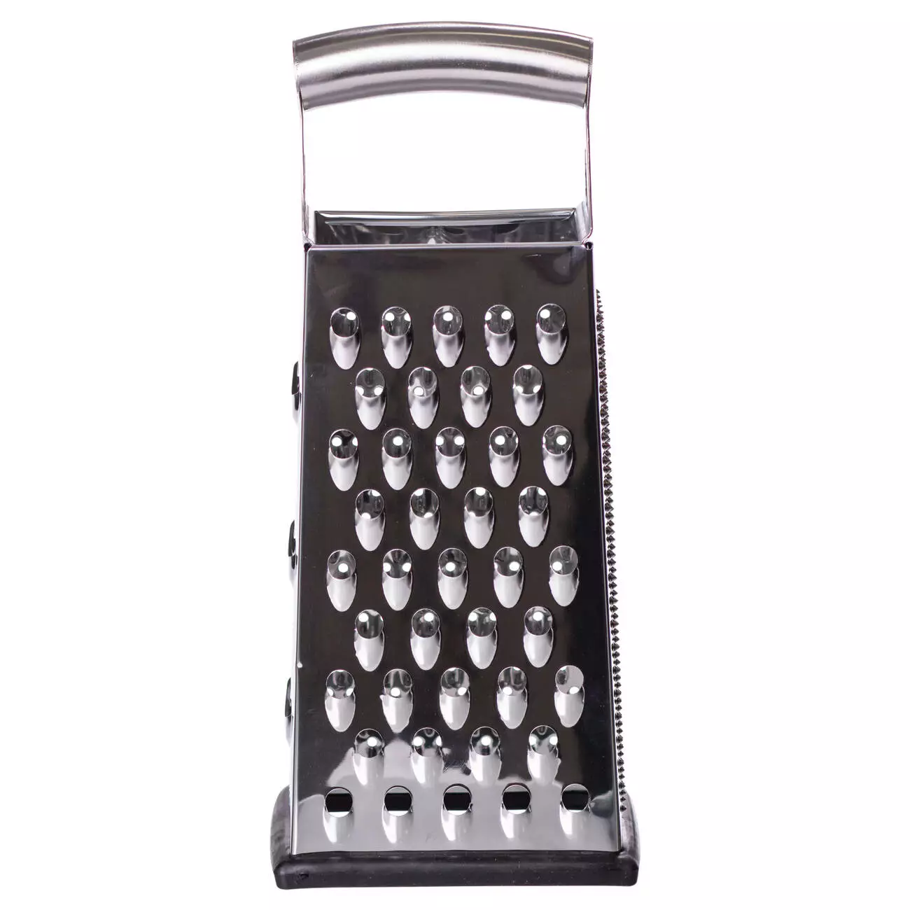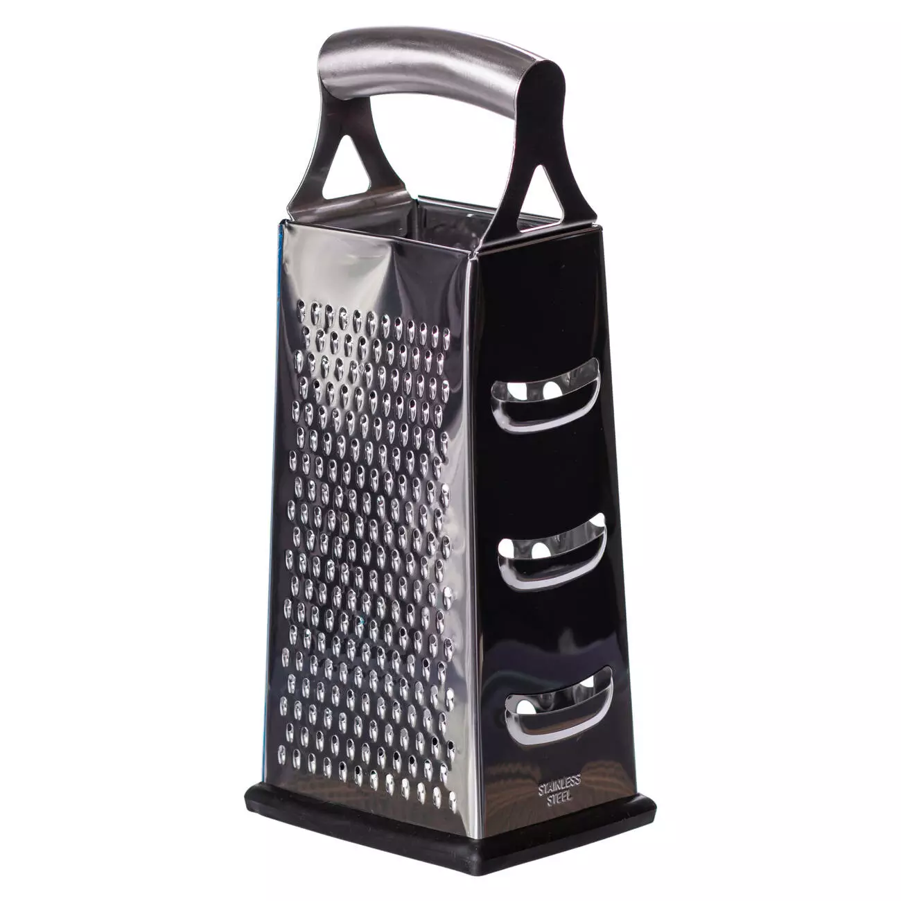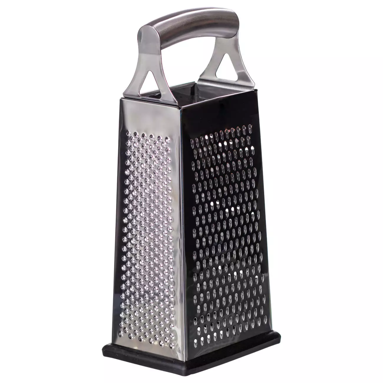 Багатофункціональна чотиристороння тертка — універсальний інструмент для кухні, що дозволяє виконувати кілька задач без зміни пристрою. Чотири робочі поверхні призначені для натирання великим і дрібним способом, подрібнення та нарізання скибками. Підходить для сиру, овочів, фруктів, шоколаду та інших інгредієнтів.