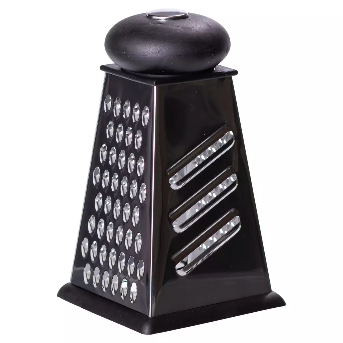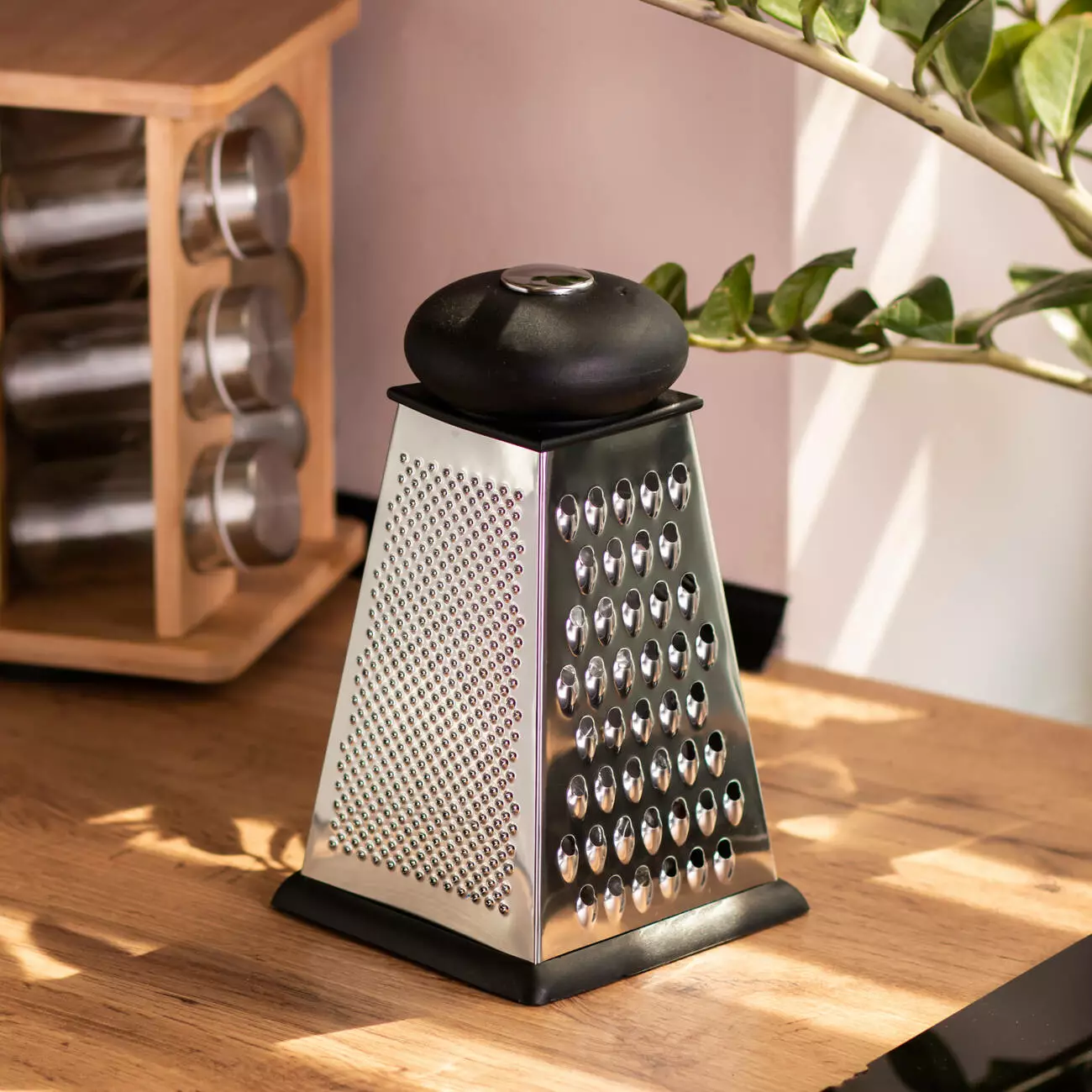 Чотиристороння кухонна тертка — функціональний інструмент для щоденного приготування страв. Завдяки чотирьом різним робочим поверхням вона дозволяє натирати продукти на великі чи дрібні шматочки, нарізати скибками або подрібнювати, не змінюючи інструменту. Така тертка ідеально підходить для овочів, сиру, фруктів, шоколаду чи горіхів.