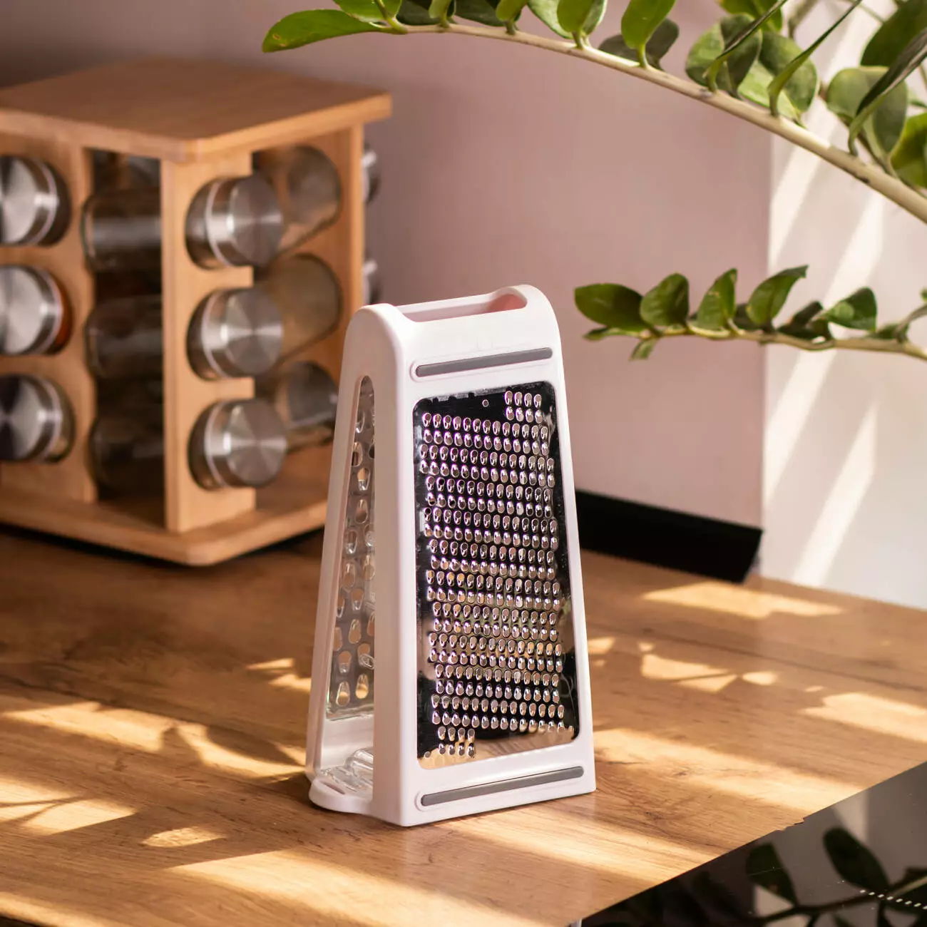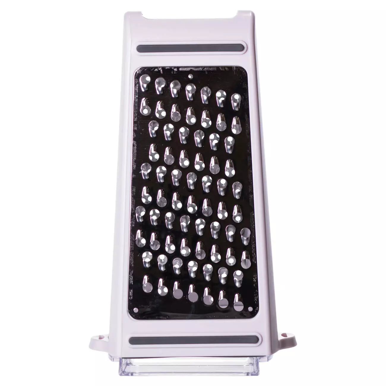 Тертка оснащена протиковзкою основою, що забезпечує стабільність під час використання. При вазі 400 грамів тертка зберігає баланс між легкістю та стійкістю. Підходить для щоденного використання на кухні, легко очищується та не потребує складного догляду.