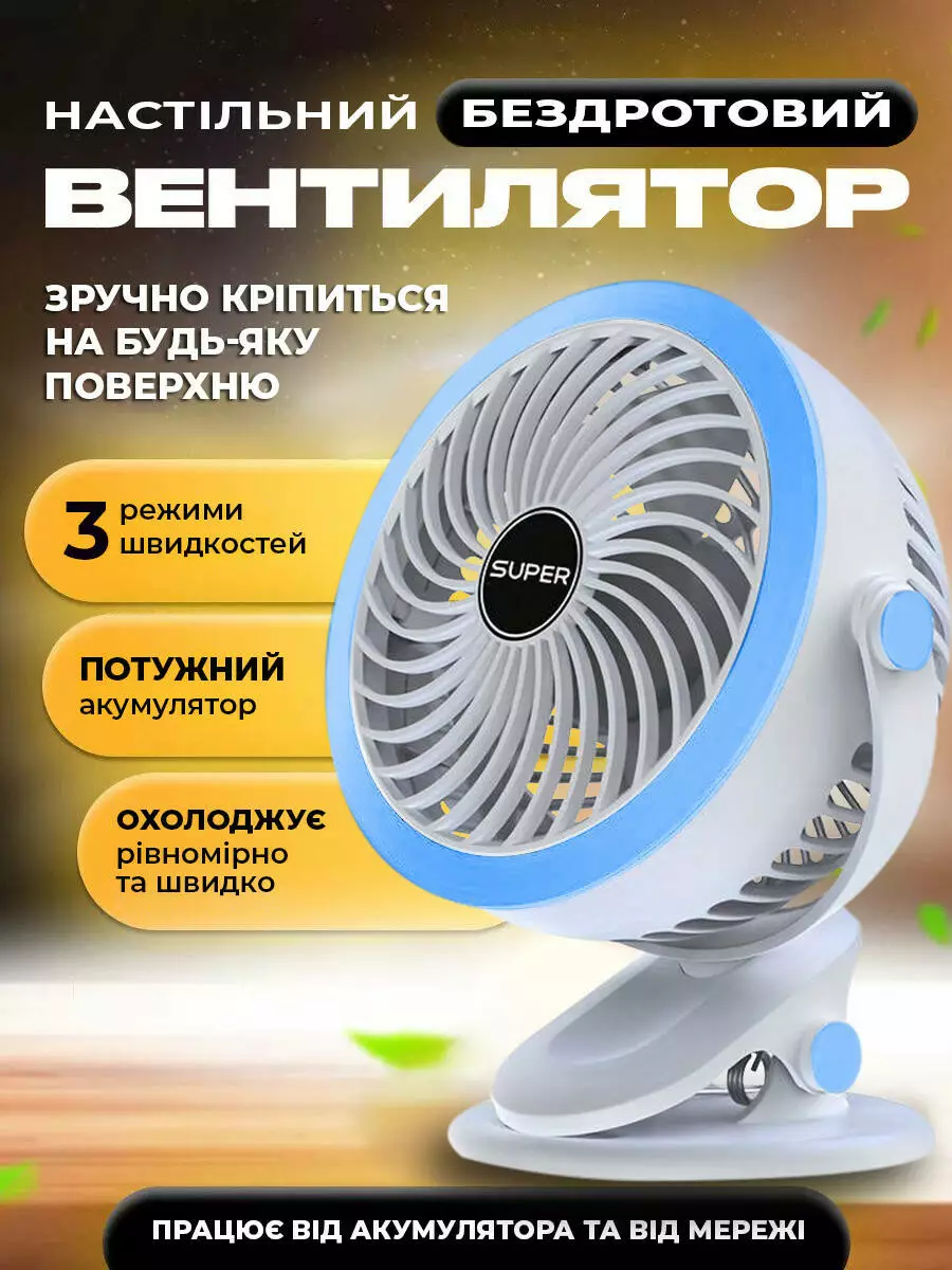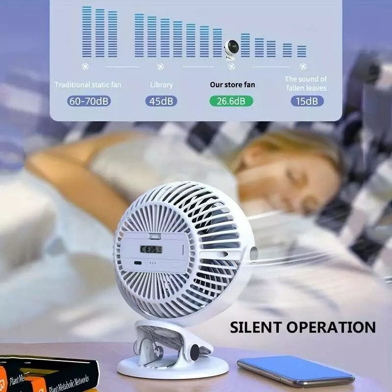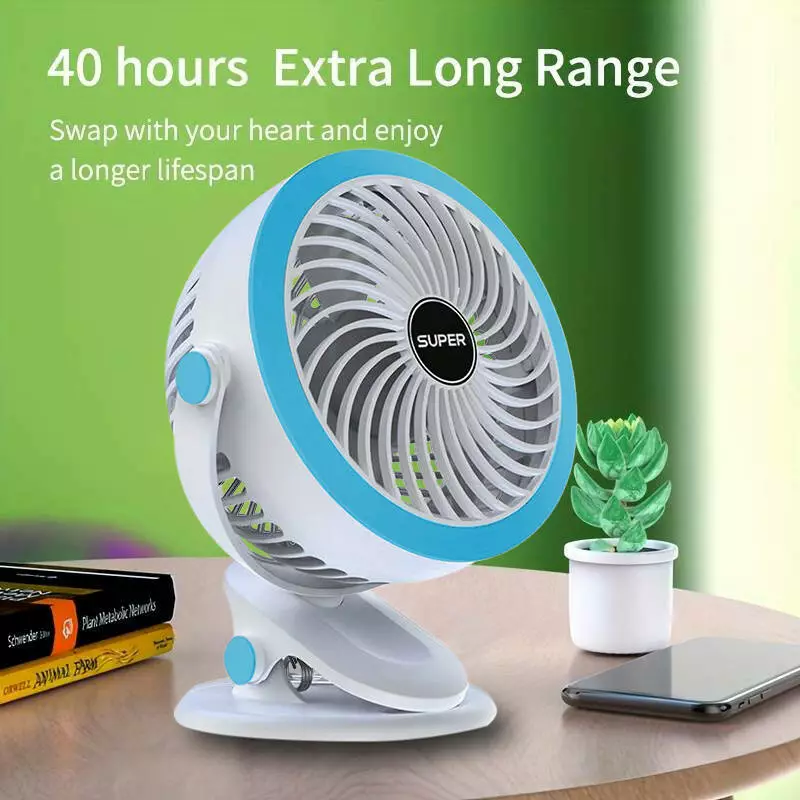 - Прочный зажим: Портативный вентилятор оснащен