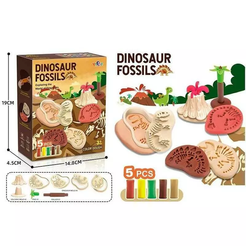 Тісто для ліплення 5833 C (96/2) "Динозаври", 5 кольорів тіста, молди, в коробці