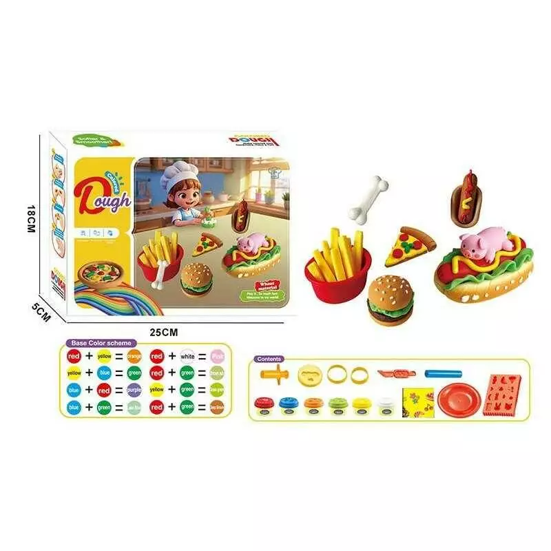 Тісто для ліплення 9010 (72/2) екструдер, 6 кольорів тіста, фігурні форми, ніж, тарілочка, в коробці