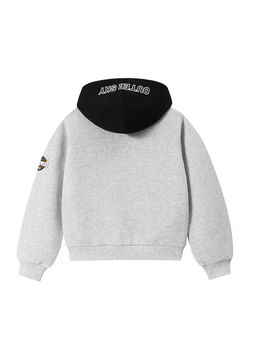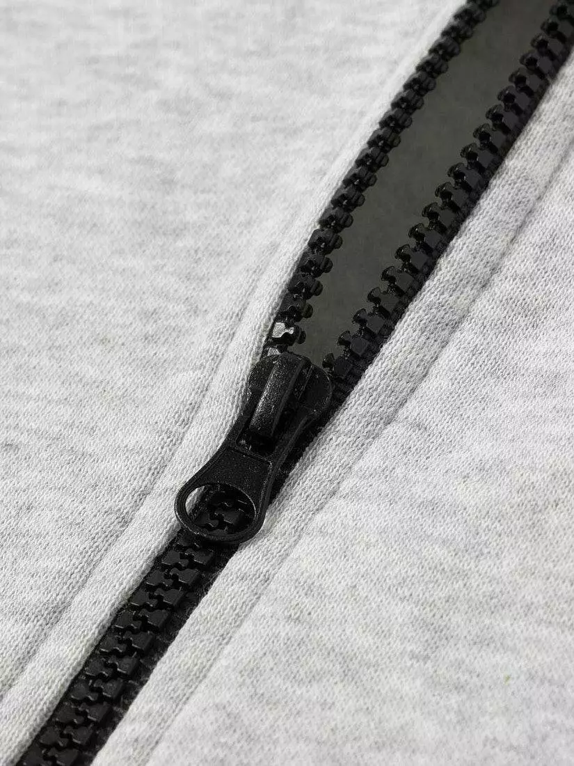 Деталі моделі: толстовка світло-сірого кольору. Глибокий каптур чорного кольору. Спереду застібка-блискавка. На рукаві декоративний елемент - нашивка. Дві бокові кишені. Манжеті та низ толстовки виконані з еластичної гумки, яка служить чудовою фіксацією та забезпечує комфорт у русі.