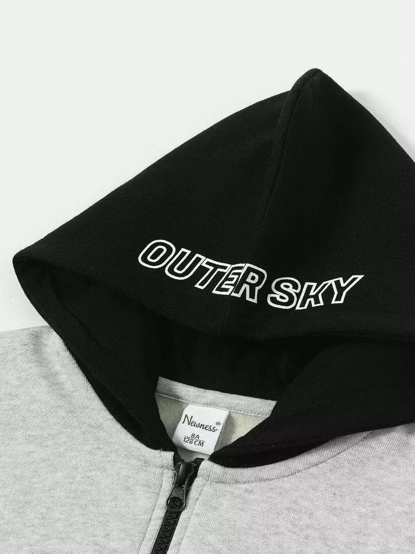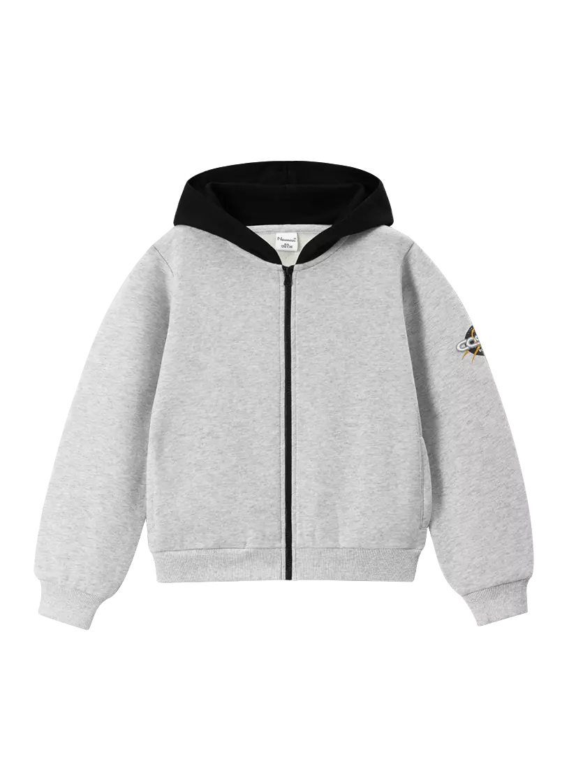 Зустрічайте нову колекцію - колаборація брендів YUMSTER і NEWNESS! Толстовка на блискавці з глибоким капюшоном. Ідеальний варіант для повсякденного гардеробу хлопчика. Нехай ваш модник почувається стильно та затишно у цьому одязі! Деталі моделі: толстовка світло-сірого кольору. Глибокий каптур чорного кольору. Спереду застібка-блискавка. На рукаві декоративний елемент - нашивка. Дві бокові кишені. Манжеті та низ толстовки виконані з еластичної гумки, яка служить чудовою фіксацією та забезпечує комфорт у русі. Розмірний ряд: на зріст від 128 см до 164 см