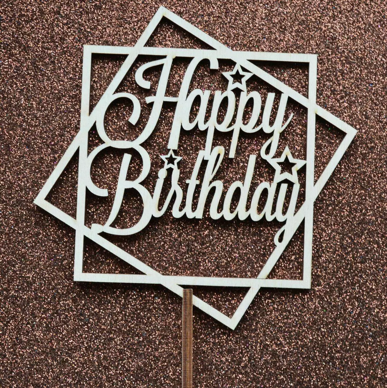 Топпер з дерева абстрактний "Happy birthday" 13.7*13.7 см