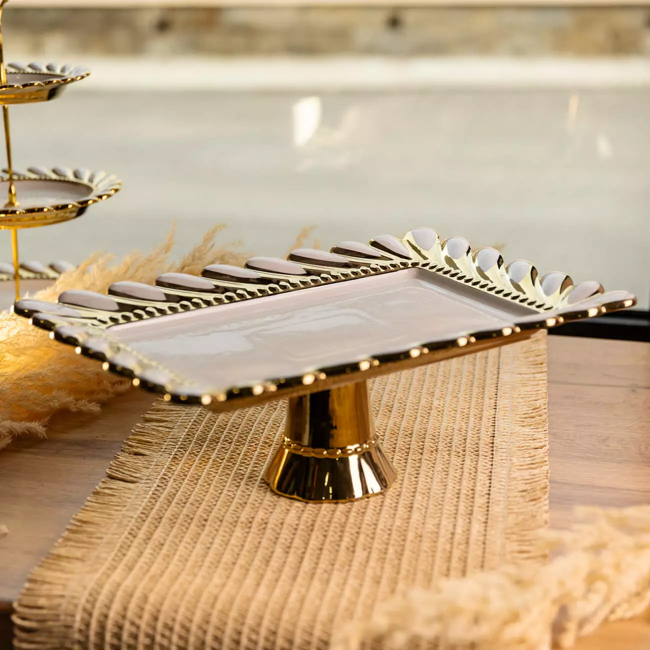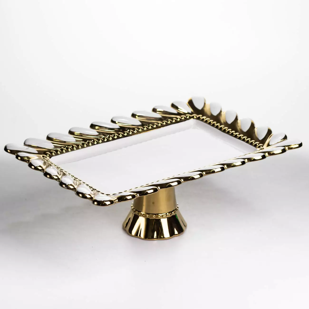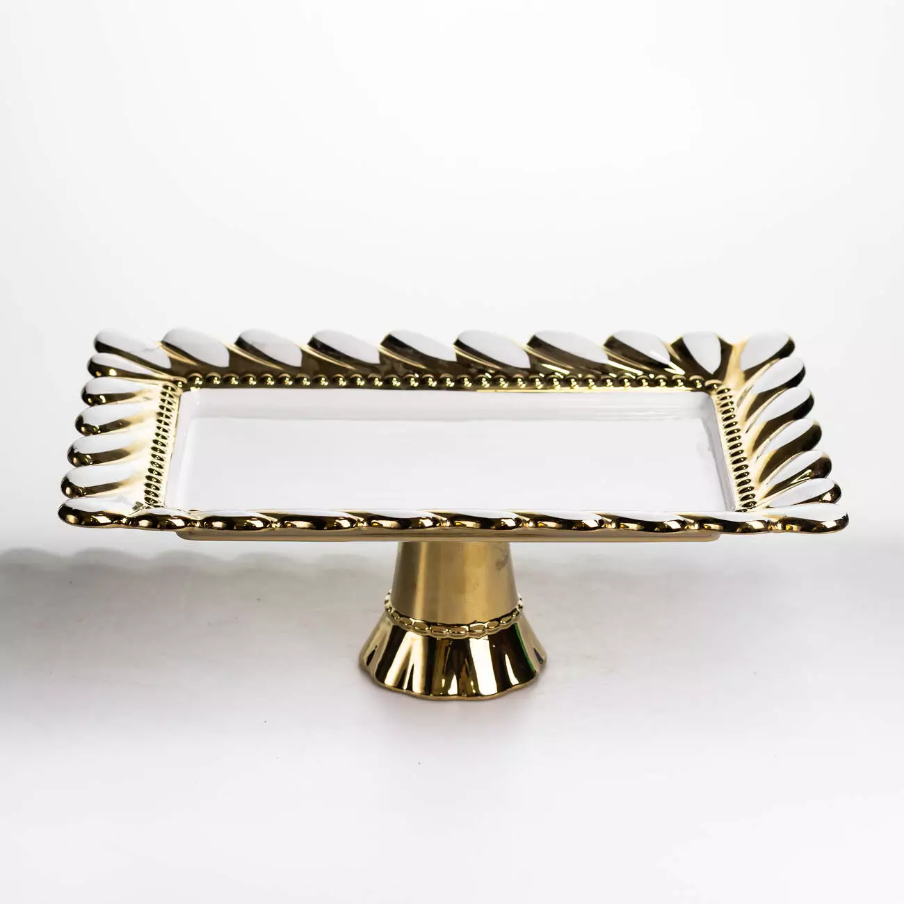 Тортівниця на ніжці Tiffany прямокутна порцелянова 36*24*13.5 см