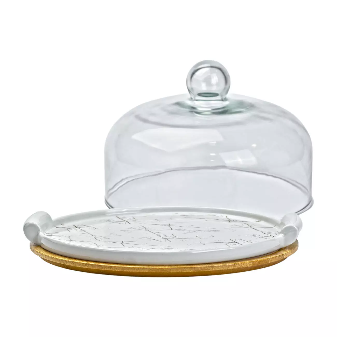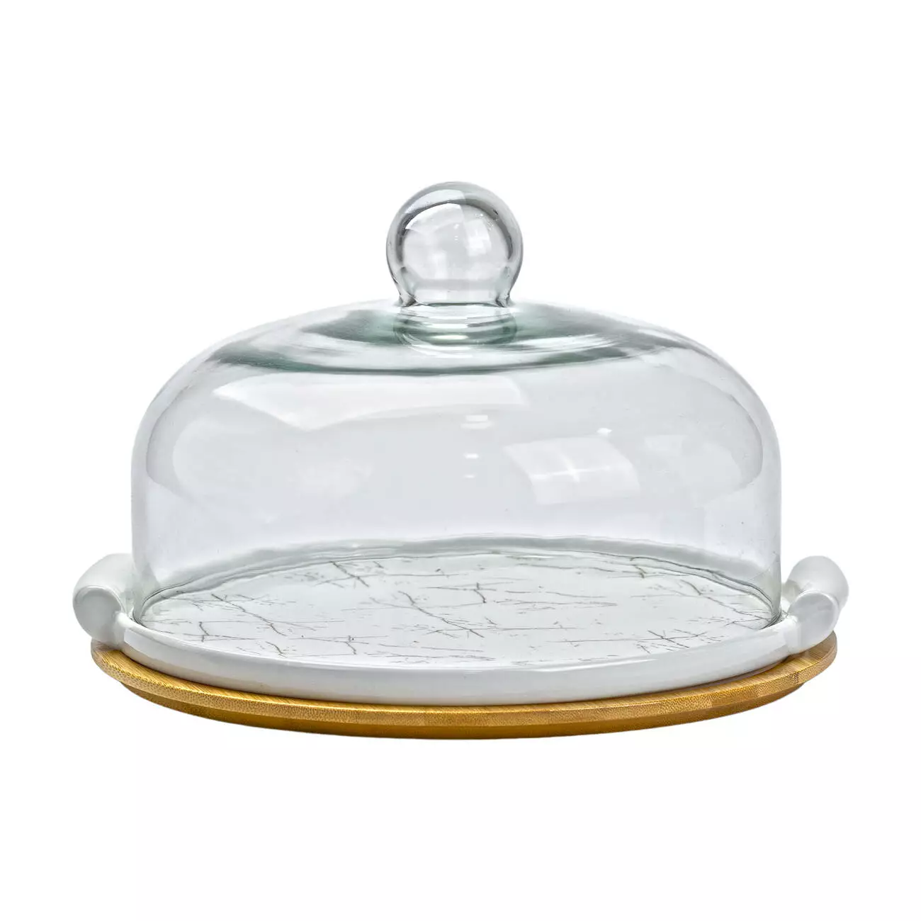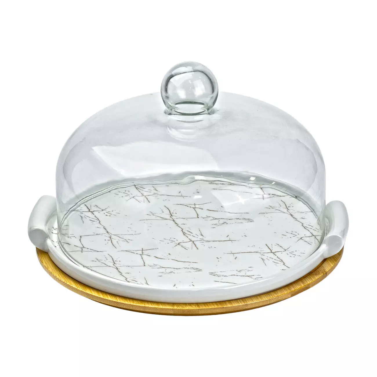 Тортівниця порцелянова зі скляною кришкою 29 см