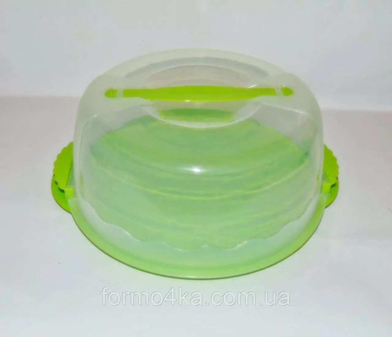 прозрачного. Крышка тортовницы надежно крепится к основанию с