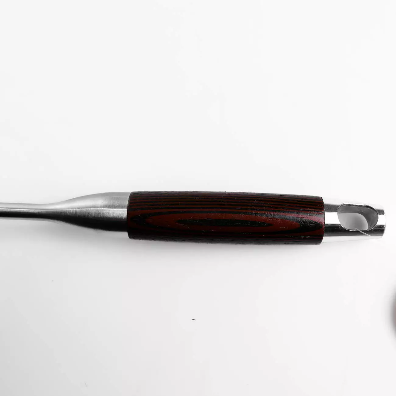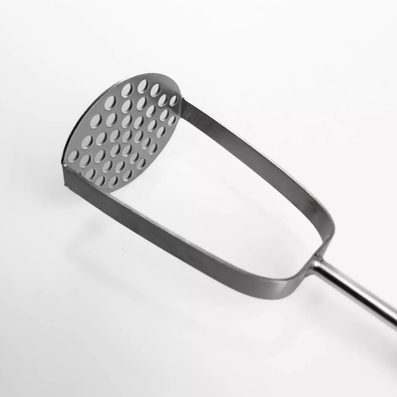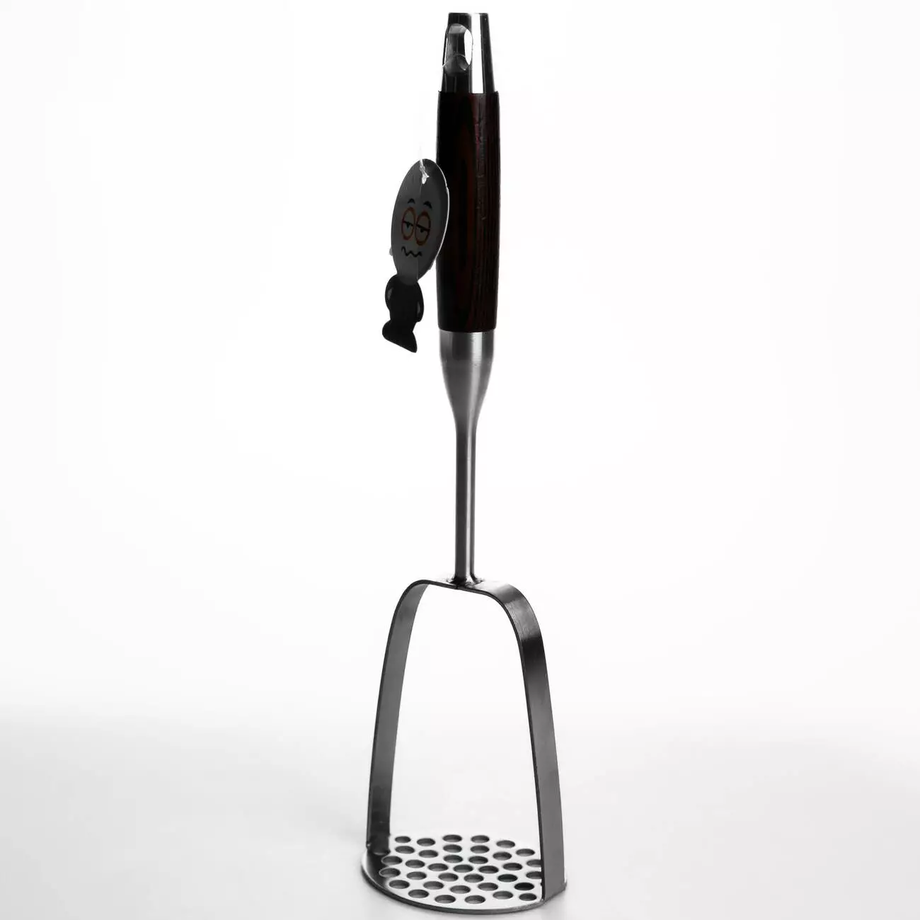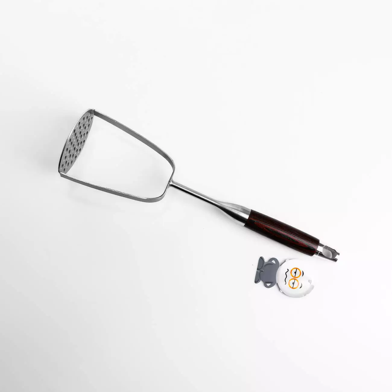 Товкачка для картоплі - незамінний кухонний інструмент для приготування ніжного та повітряного пюре. Аксесуар виготовлений із харчової нержавіючої сталі із зручною дерев'яною ручкою. Товкач має оптимальний розмір робочої поверхні для швидкого подрібнення овочів.