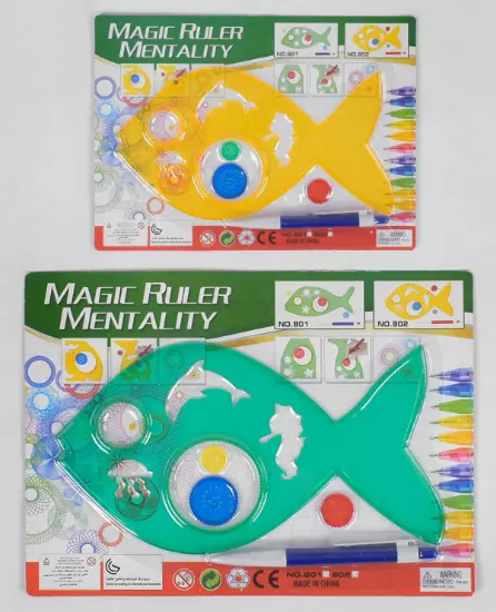 Лінійка спирограф - це чудова дитяча іграшка, яка допомагає простими рухами створювати унікальні і об'ємні візерунки. Модель 802 виконана в формі рибки і включає в себе 3 трафарети з морськими мешканцями і 2 зубчастих кола для створення візерунка. Лінійка призначена для дітей від 3-х до 8-ми років, вона розвиває просторове мислення, логіку, допомагає вивчити форми і готує руку до письма. Щоб створити візерунок візьміть круглий вкладиш і зафіксуйте стрижень ручки в одному з отворів, а після робіть будь-які, навіть хаотичні рухи всередині зубчастого кола.