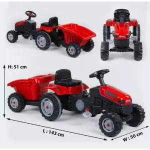 Фотография 1 товарной позиции интернет-магазина детских игрушек www.smarttoys.com.ua Трактор педальний з причепом 07-316 RED (1) клаксон на кермі, сидіння регульоване, задні колеса з гумовими накладками, в коробці
