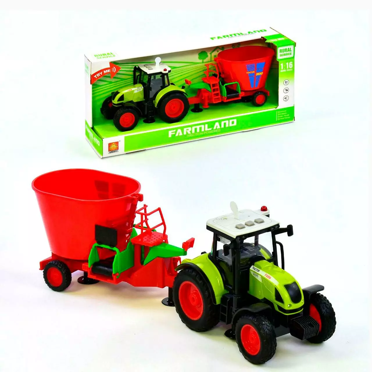 1:16 модель трактора работает от 3-х батареек типа AG13 (входят в