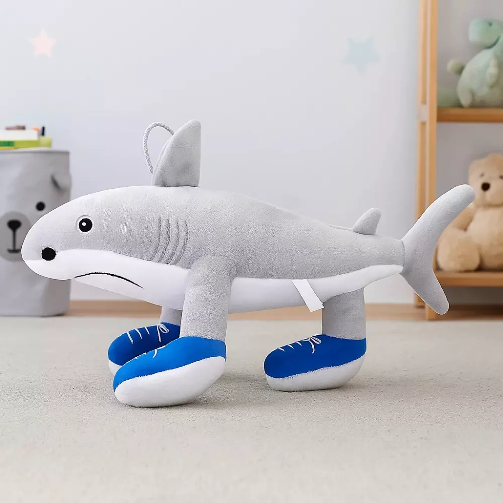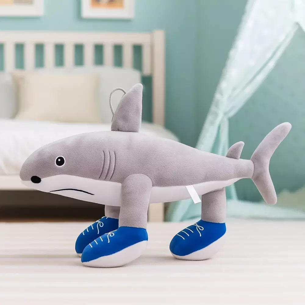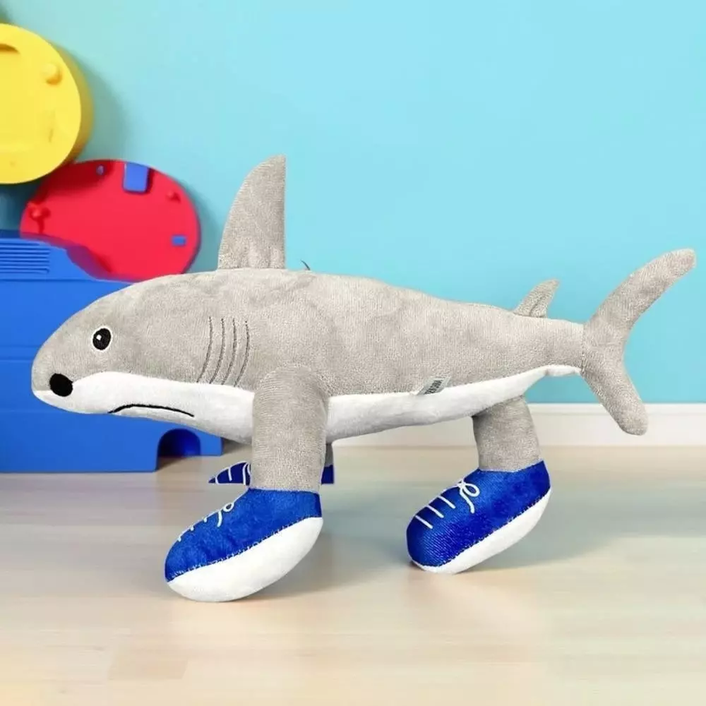 Ця кумедна акула виконана з приємного на дотик плюшу та ідеально